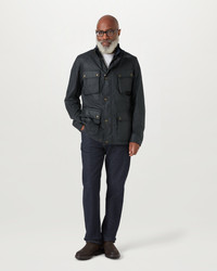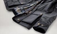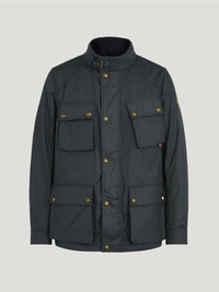 Crafted from 6 oz. waxed cotton, the Fieldmaster jacket in Dark Navy features our signature slanted map pocket and internal drawstring at the waist so you can perfect the fit. Rewax it to keep it water and wind-repellent. It snaps into the Icon gilet (sold separately). DETAILS - 6 oz. waxed cotton, with a unique blend of micro and technical waxes - The wax coating renders the cloth water and wind repellent - Corduroy linings at the collar, cuffs and hem provide added comfort and resilience at high contact points - Cotton twill lining woven in the signature Belstaff checked pattern - Woven phoenix patch on left sleeve - Centre front zip fastenings with snap closure placket - Buckle-adjusted collar - Four modern, storm proof bellows pockets with dual press stud closure, signature tilted left chest pocket - Signature tilted left chest pocket - By choosing our cotton products, youare supporting Belstaff`s investment in Better Cottonas mission. This product is sourced via a system of mass balance and therefore may not contain Better Cotton. Learn more at bettercotton.org/learnmore - Shell: 100% Cotton, Body Lining: 100% Cotton - Sleeve Lining: 55% Polyester, 45% Viscose/Rayon - Product ref: 105300DKNVY SIZE AND FIT - Cut for a regular fit - Model wears a size US 40 - Model measures: Height: 6'2", Chest: 40", Waist: 32"