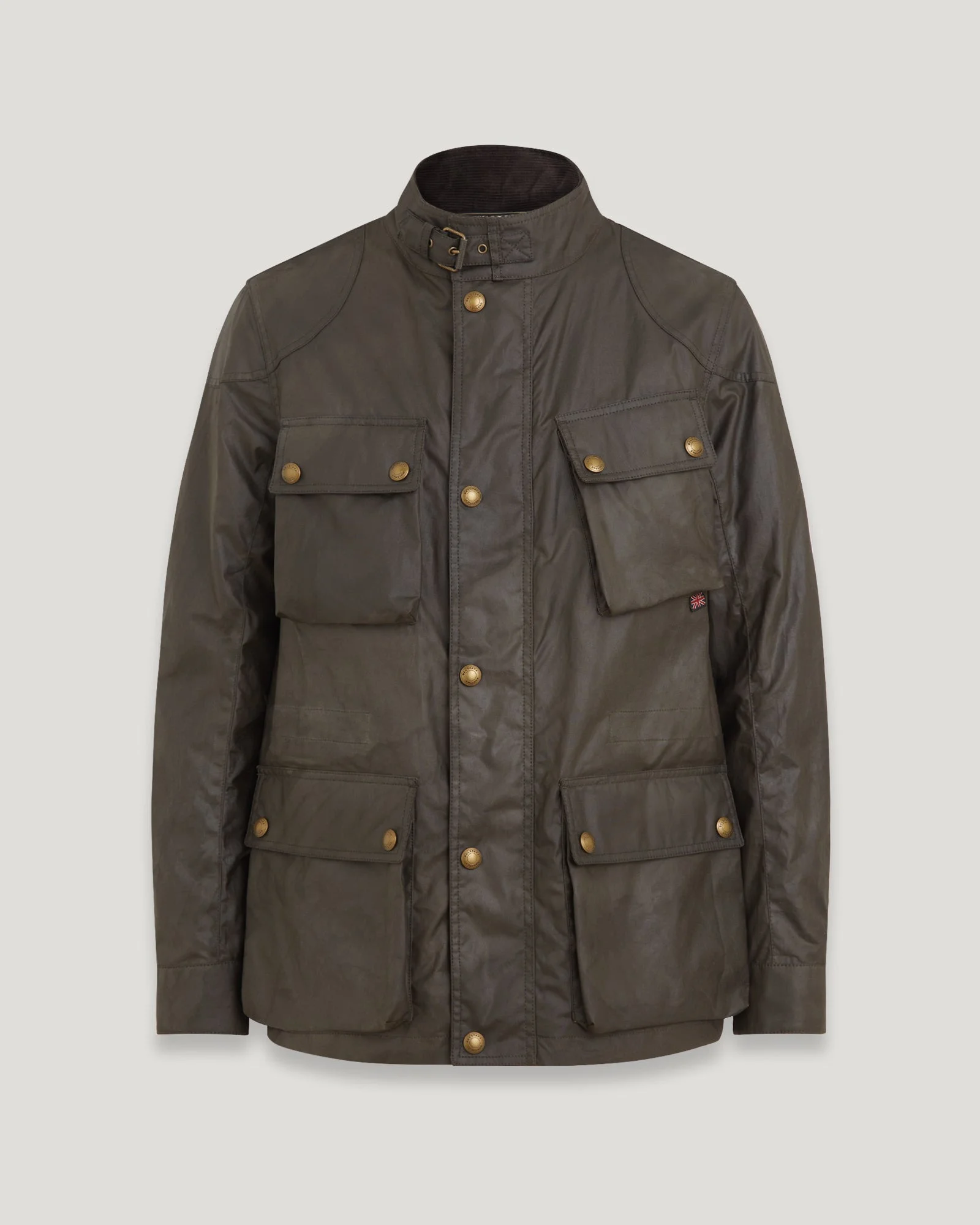 Crafted from 6 oz. waxed cotton, the Fieldmaster jacket in Faded Olive features our signature slanted map pocket and internal drawstring at the waist so you can perfect the fit. Rewax it to keep it water and wind-repellent. It snaps into the Icon gilet (sold separately). DETAILS - 6 oz. waxed cotton, with a unique blend of micro and technical waxes - The wax coating renders the cloth water and wind repellent - Corduroy linings at the collar, cuffs and hem provide added comfort and resilience at high contact points - Cotton twill lining woven in the signature Belstaff checked pattern - Woven phoenix patch on left sleeve - Centre front zip fastenings with snap closure placket - Buckle-adjusted collar - Four modern, storm proof bellows pockets with dual press stud closure, signature tilted left chest pocket - Signature tilted left chest pocket - By choosing our cotton products, youare supporting Belstaff`s investment in Better Cottonas mission. This product is sourced via a system of mass balance and therefore may not contain Better Cotton. Learn more at bettercotton.org/learnmore - Shell: 100% Cotton, Body Lining: 100% Cotton - Sleeve Lining: 55% Polyester, 45% Viscose/Rayon - Product ref: 105300FDOLI SIZE AND FIT - Cut for a regular fit - Model wears a size US 38 - Model measures: Height: 6'3", Chest: 37", Waist: 32"