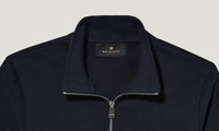 Our Belstaff Zip Through gives three guarantees: Track top convenience, sweatshirt comfort and no hood to get in the way. Cut from the our own soft, cotton loopback jersey, the navy Zip Through also brings practical plusses with two side pockets and a central zip in case things get hot under the high collar. DETAILS - Cotton loopback jersey - High zip-through stand collar - Ribbed collar, cuffs and hem - Two side entry pockets - External Fabric: 100% Cotton - Product ref: 100050DKINK SIZE AND FIT - Cut for a relaxed fit - Model wears a size L - Model measures: Height: 6'1", Chest: 36", Waist: 31"