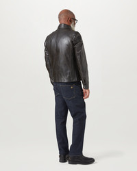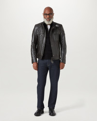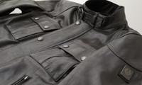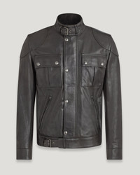 Introduced in 1969, the Gangster in black hand-waxed leather is inspired by the 'Golden Age' of motorcycles. Now built for life off the bike, it's a refined, timeless silhouette that'll get better with age. DETAILS - Hand waxed leather with a patina that will darken with age - Classic Belstaff shape - Shoulder and elbow panels - Corrugated side panels - Metal plaque on leather base on left sleeve - Centre front zip and snap placket - Buckle-adjusted straps at collar and hem - Two snap closure flap pockets - Two zipped lower front pockets - Belstaff`s leather products support responsible manufacturing via the Leather Working Group. - Shell: 100% cow leather, Body lining: 100% cotton, Sleeve lining: 100% viscose/rayon - Side panel lining: 65% acetate 35% polyester - Product ref: 105301BLACK SIZE AND FIT - Cut for a slim fit - Model wears a size US 40 - Model measures: Height: 6'1", Chest: 39a, Waist: 30"