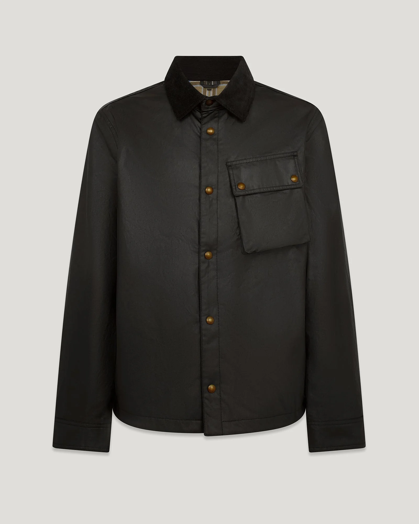 Meet the Ground jacket in black with a stylish corduroy collar. It offers instant warmth and protection with 6oz. British Millerain waxed cotton, which is water and wind repellent. Inside features a cotton twill lining woven in the signature Belstaff checked pattern, our angled moto inspired chest pocket and snap adjustable cuffs with antique brass hardware. This men’s jacket is as at home on country walks as it is on the work commute over a suit. DETAILS - 6 oz. waxed cotton - Cotton twill lining woven in the signature Belstaff checked pattern - Angled moto inspired chest pocket with two snap closure - Antique brass hardware - Corduroy collar - Flat woven sleeve patch - Centre front zip closure with snap closure placket - Water repellent - Wind repellent - Shell: 100% Cotton, Lining: 100% Cotton - Sleeve lining: 55% Polyester, 45% Viscose / Rayon - Product ref: 105804BLACK SIZE AND FIT - Cut for a regular fit