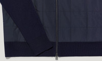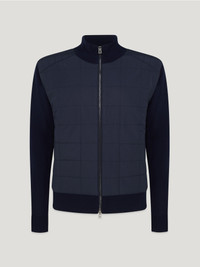 Meet the Kelbrook zip cardigan in Dark Ink. Inspired by military uniforms and made for updating your daily wardrobe, this boxy zip-through knit combines structured panelling with soft merino wool for an elevated finish. DETAILS - Extra-fine merino - Channel quilted shoulder reinforcement detailing - Ribbed cuffs and hem - Quilted mixed media body - Belstaff phoenix patch on left sleeve - Non-mulesed wool, recycled polyester contrast - Front: 100% Recycled polyester Woven: 100% Extra-fine marino wool Filling 100% Recycled polyester - Product ref: 105303DKINK SIZE AND FIT - Cut for a slim fit - Model wears a size L - Model measures: Height: 6'3", Chest: 38", Waist: 32"