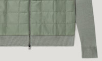 Meet the Kelbrook zip cardigan in Sage Green. Inspired by military uniforms and made for updating your daily wardrobe, this boxy zip-through knit combines structured panelling with soft merino wool for an elevated finish. DETAILS - Extra fine merino - Channel quilted shoulder reinforcement detailing - Ribbed cuffs and hem - Quilted mixed media body - Belstaff phoenix patch on left sleeve - Centre front zip fastening - Non-mulesed wool - Front: 100% Recycled polyester, Woven: 100% Extrafine merino wool, Filling: 100% Recycled polyester - Product ref: 105303SAGGR SIZE AND FIT - Cut for a slim fit