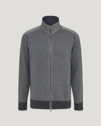 The Kelby zip cardigan in Charcoal / Mid Grey offers a versatile layer, crafted from virgin merino wool. Wear it open as a light outer layer or zip it up to enjoy the warmth of its channel-quilted stand collar. DETAILS - Extra fine virgin merino wool with polyester detailing - Channel quilted shoulder reinforcement detailing - Ribbed cuffs and hem - Embroidered Belstaff phoenix patch on left sleeve - Centre front full zip closure - Non-mulesed - Recycled polyester - 100% Extra fine merino wool - Product ref: 105862CLMGY SIZE AND FIT - Cut for a slim fit - Model wears a size L - Model measures: Height: 6'1", Chest: 39”, Waist: 30"