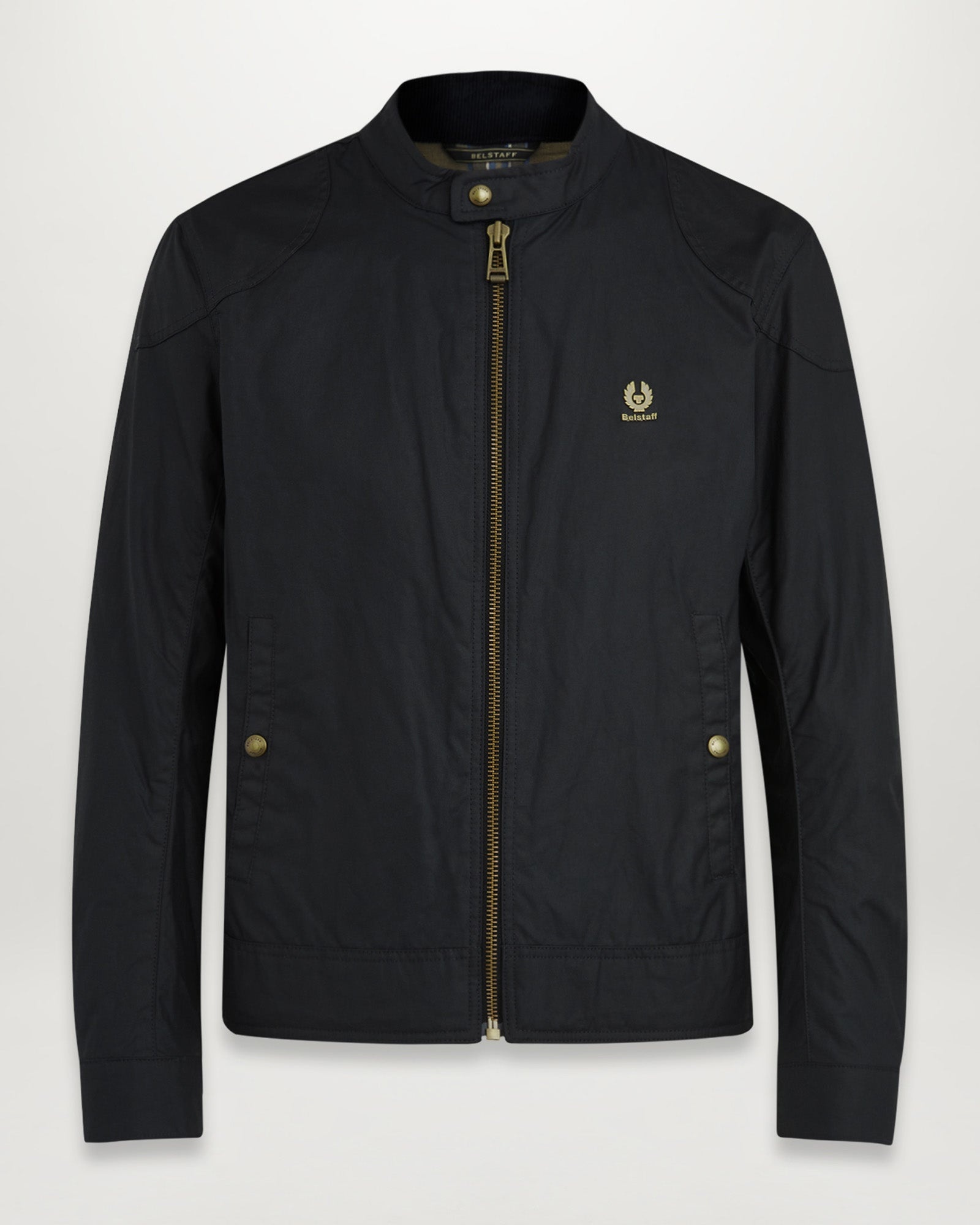 Upgrade by stripping back with the Kelland. A classic café racer, the Kelland is all about performance and clean lines. Crafted from our unique black 6 oz. waxed cotton, with reinforced shoulders and elbows, it's a jacket for those who push the limits. DETAILS - 6 oz. waxed cotton with a proprietary blend of micro and technical waxes - Water-repellent and wind-repellent - Signature Belstaff cotton twill lining - Corduroy linings at the collar and cuffs - Self-fabric reinforced shoulders and elbows for durability at high abrasion points - Rear kidney guard panel - Exterior: 100% Cotton - Body lining: 100% Cotton. Sleeve lining: 100% Viscose - Model also wears Longton Slim Jeans in Indigo and Trialmaster Zip Up Boots in Black - Product ref: 100030BLACK SIZE AND FIT - Designed for a slim fit. The Model is 6'2 and wears a size 50