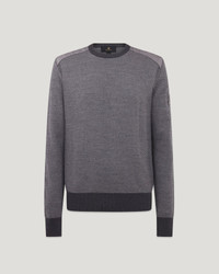 Meet the Kerrrigan crew neck jumper in Charcoal / Mid Grey. Designed to fit comfortably solo or layered, this light merino knit has panelled shoulders for a point of difference. Wear yours with structured denim. DETAILS - Extra fine virgin merino wool with polyester-quilted shoulder panel detailing - Direct embroidered Belstaff phoenix patch on left sleeve - Non-mulesed wool - 100% Extra fine merino wool - Product ref: 105860CLMGY SIZE AND FIT - Cut for a regular fit - Model wears a size L - Model measures: Height: 6'1.5", Chest: 41", Waist: 32"