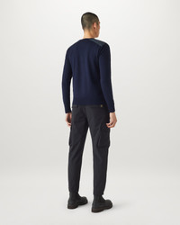 This lightweight jumper is expertly crafted from extra-fine merino wool. Reinforced shoulder panels give the Kerrigan Crew Neck a functional military slant. DETAILS - Extra fine merino - Virgin merino wool with polyester-quilted shoulder panel detailing - Long sleeve sweater with crew neck - Belstaff phoenix patch on left sleeve - Non-mulesed wool - Body: 100% wool, Woven: 100% polyester, Filling: 100% polyester - Product ref: 105304WSNVY SIZE AND FIT - Cut for a slim fit - Model wears a size M - Model measures: Height: 6'3", Chest: 37", Waist: 32"