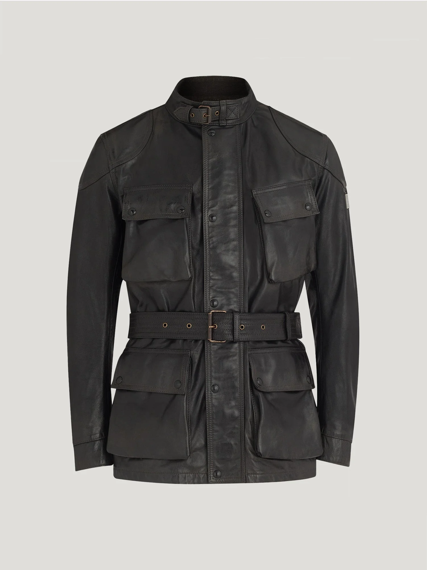 The premium leather counterpart to our iconic waxed cotton classic style. Our Trialmaster Panther is the definitive Belstaff jacket in Antique Black hand-waxed leather. The distinctive details endure from the slanted map pocket to the adjustable buckled collar and belt. Our artisanal hand finishing gives a unique patina and adds a water repellent property to the leather. The patina will darken and become richer with increased age and wear. Belstaff`s leather products support responsible manufacturing via the Leather Working Group. DETAILS - Hand-waxed leather, washed and treated for a worn effect - Patina will darken with age - Classic belted Belstaff shape - Archival check lining - Buckle-adjusted collar - Centre front zip fastening, snap button placket - 4 snap button bellows pockets, signature tilted chest pocket - Metal plaque on sleeve - Shell: 100% Cow leather, Body lining: 100% Cotton, Sleeve lining: 100% Viscose/Rayon - Product ref: 104618ATBLK SIZE AND FIT - Cut for a regular fit - Model wears a size 50 - Model measures: Height: 6'1", Chest: 36", Waist: 31"