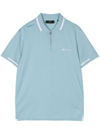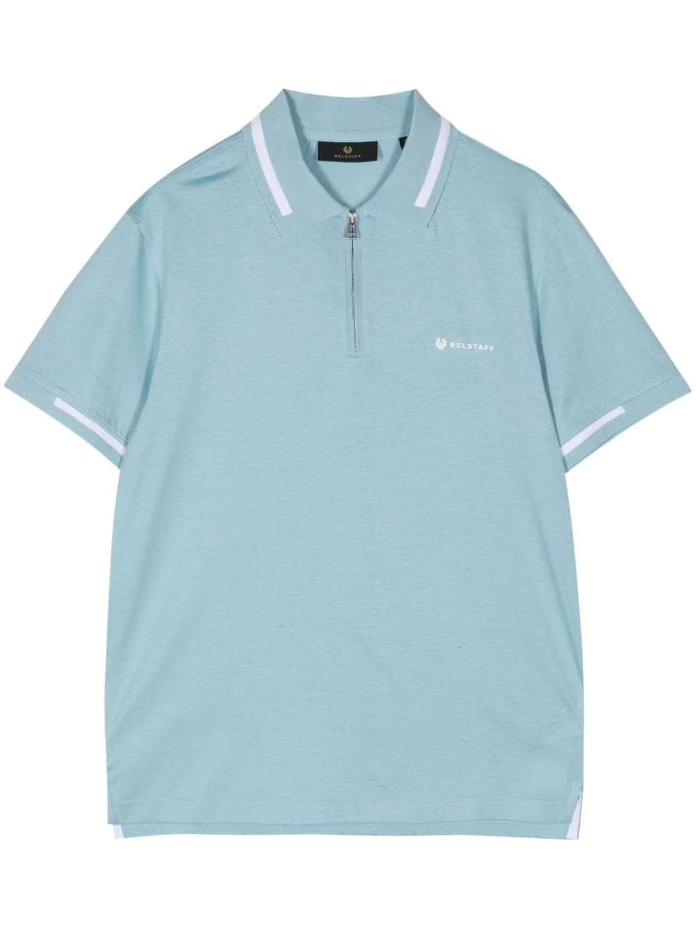 logo-print cotton polo shirt Highlights - Light blue - Cotton - Jersey texture - Logo print at the chest - Striped tipping - Polo collar - Short front zip fastening - Short sleeves - Straight hem - Short side slits Imported Composition Cotton 100%