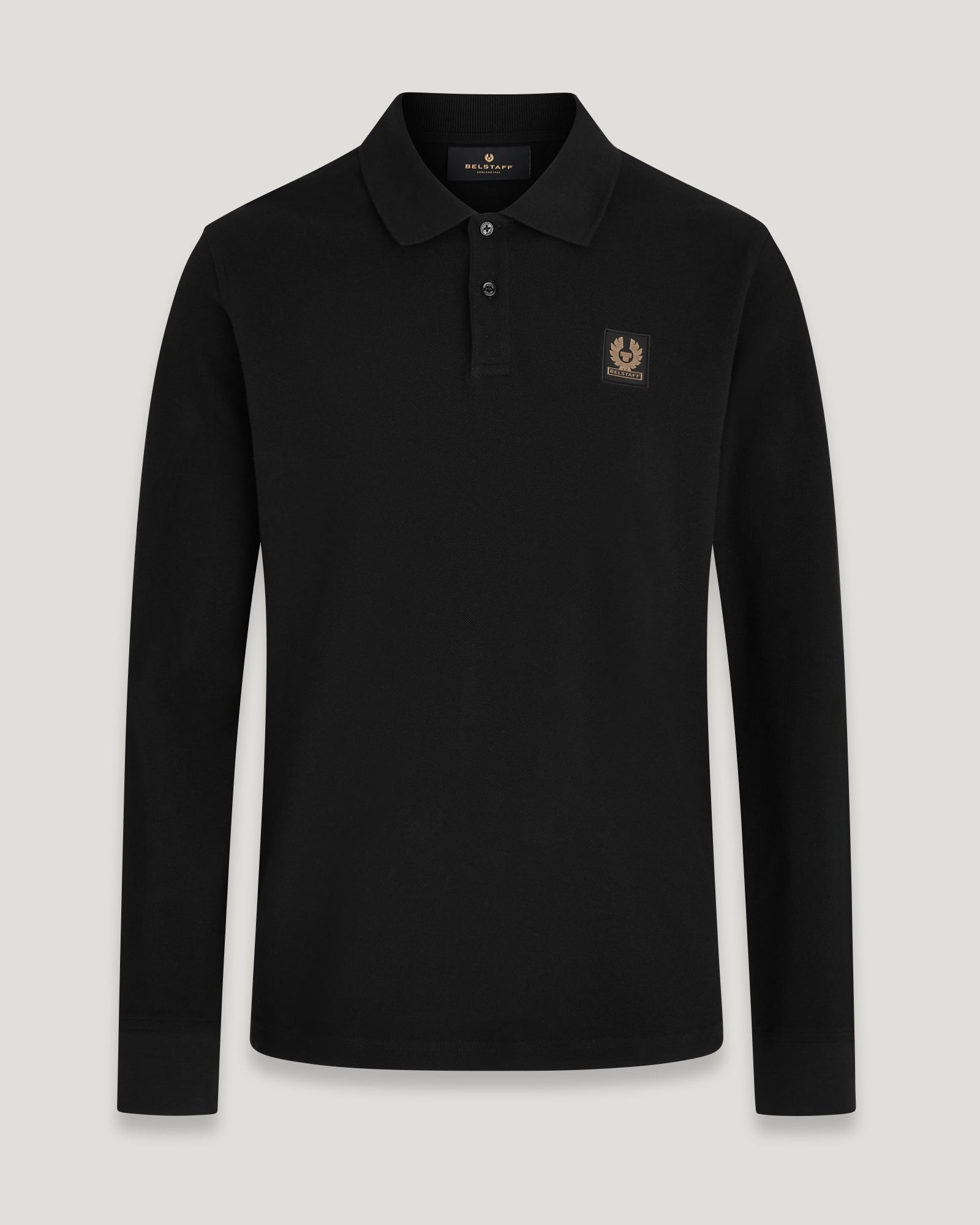 Simple and structural in breathable cotton piqué, the Black Belstaff Long-Sleeved Polo is a classic design for the everyday. DETAILS - Textured cotton piqué - Long-sleeved polo shirt - Ribbed collar and cuffs - Two-button placket - Embroidered-edge Phoenix patch on the chest - 100% cotton with stretch rib - Product ref: 104283BLACK SIZE AND FIT - Cut for a slim fit - Model wears a size L - Model measures: Height: 6'1", Chest: 40", Waist: 31â
