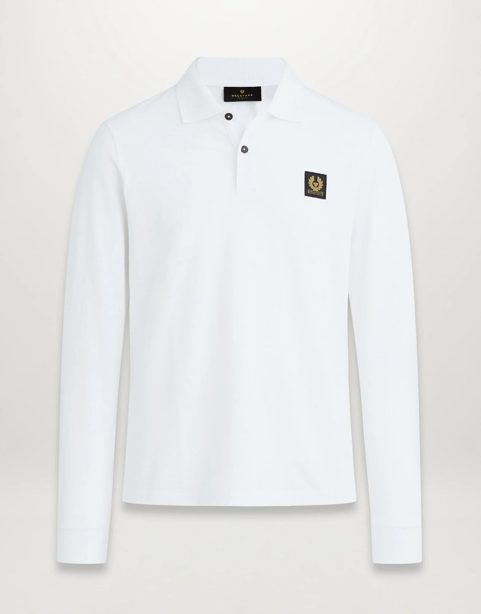 Cotton piqué in White brings subtle texture to the Belstaff Long Sleeve Polo. Our signature phoenix emblem provides a stand-out detail on the chest. DETAILS - Textured cotton pique - Long sleeve polo shirt - Classic rib collar and cuffs - Two button placket - Belstaff phoenix patch on body - Organically grown cotton - Body: 100% Cotton, Rib: 100% Cotton - Product ref: 101397WHITE SIZE AND FIT - Cut for a slim fit - Model wears a size M - Model measures: Height: 6'0", Chest: 40", Waist: 31"