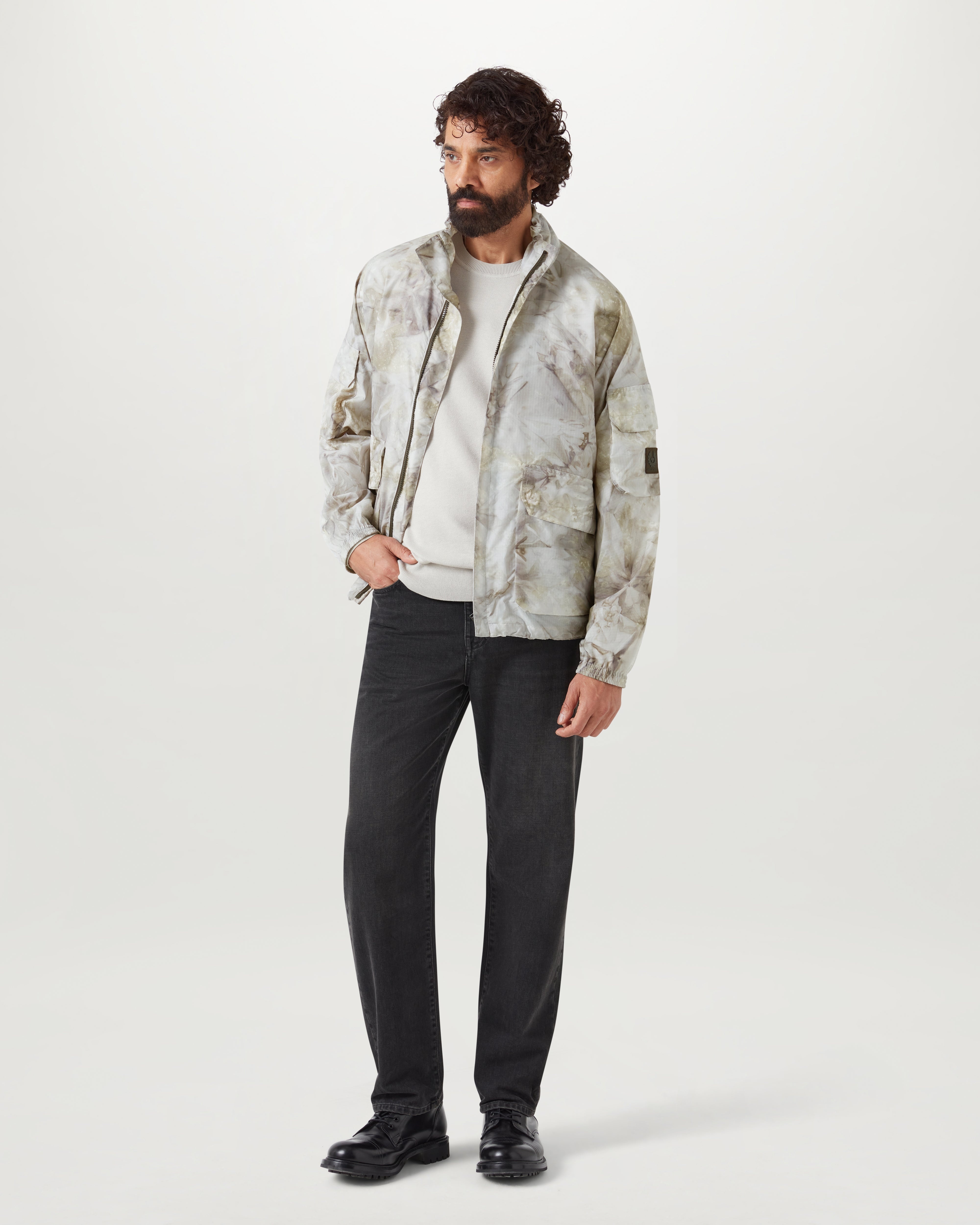 The Lough jacket in Stone Beige features a unique riverbed camo ripstop nylon, hand-dyed for a natural camo look. Its relaxed silhouette is inspired by archival designs. DETAILS - Riverbed Camo Ripstop is a lightweight ripstop nylon, hand dyed for a unique aon dry landa camo pattern - Unique one piece sleeve construction taking inspiration from archival Belstaff designs - Rubber coated contrast snaps - Vislon zippers, elasticated cuffs, adjustable hem - Woven / silicone Belstaff phoenix patch on left sleeve - 100% Polyamide - Product ref: 105926STNBG