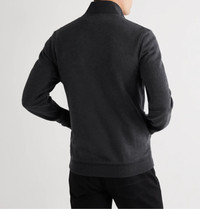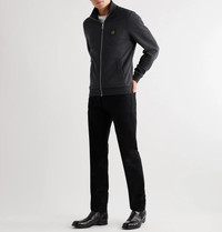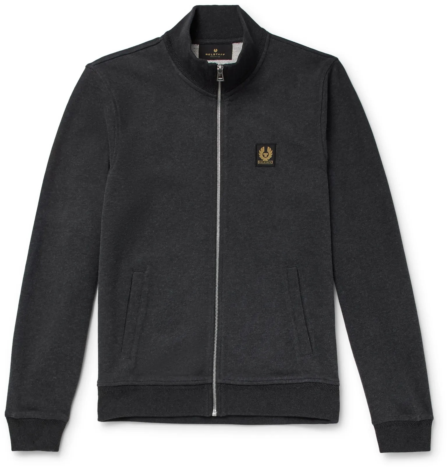 - Charcoal mélange cotton - Funnel neck, appliquéd designer emblem, front welt pockets, ribbed trims - Zip fastening - 100% cotton - Machine wash - Imported