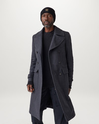 The Milford coat is a military-inspired style with an authoritative feel that has become a Belstaff icon. Built from a compact virgin Melton wool blend in Charcoal, it has a sharp double-breasted front, epaulettes and a belted waist that will always be classic. DETAILS - Wool cashmereA - Adjustable button cuffs tabs and rear martingale belt - Oversized notched lapels - Protective high collar - Horn buttons with Belstaff engraved on the round - Double-breasted button closure - Two side entry pockets - Two lower flap pockets - Two internal pockets - Wool from a responsible source - Shell: 75% Wool, 20% Polyamide, 5% Cashmere - Lining: 100% Viscose, Filling: 100% Polyester - Product ref: 105292CHARC SIZE AND FIT - Cut for a slim fit - Model wears a size UK 38 - Model measures: Height: 6'0", Chest: 40", Waist: 31"