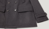 The Milford peacoat in Charcoal. This wool and cashmere blend is a military-inspired design with officer class. The belted, double-breasted coat is crafted from Ink Blue virgin Italian premium melton wool cashmere – equally at home over a suit or pair of selvedge jeans. A statement piece with quiet authority for life’s front line. DETAILS - Italian wool cashmere - Double-breasted peacoat style referencing our iconic Milford coat - Adjustable button cuff tabs - Oversized notched lapels - Horn buttons with Belstaff engraved on the round - Double-breasted button closure - Detachable throat latch - Two side entry pockets - Two lower flap pockets - Internal pockets - Shell: 75% Wool, 20% Polyamide, 5% Cashmere - Product ref: 105325CHARC SIZE AND FIT - Cut for a slim fit