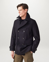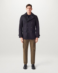 The Milford peacoat in Ink Blue. This wool and cashmere blend is a military-inspired design with officer class. The belted, double-breasted coat is crafted from Ink Blue virgin melton wool – equally at home over a suit or pair of selvedge jeans. A statement piece with quiet authority for life’s front line. DETAILS - Wool cashmereA - Double-breasted peacoat style referencing our iconic Milford coat for detailing throughout - Adjustable button cuff tabs - Oversized notched lapels - Horn buttons with Belstaff engraved on the round - Double-breasted button closure - Detachable throat latch - Two side entry pockets - Two lower flap pockets - Internal pockets - Wool from a responsible source - Shell: 75% Wool, 20% Polyamide, 5% Cashmere - Lining: 100% Viscose, Filling: 100% Polyester - Product ref: 105325INKBL SIZE AND FIT - Cut for a slim fit - Model wears a size US 38 - Model measures: Height: 6'1", Chest: 39", Waist: 32"
