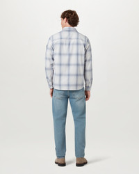 Our Outpost flannel shirt is crafted from heavyweight Silver Birch / Quarry Blue / Line Blue cotton flannel. This soft, comfortable yarn is made in Portugal and features a dye plaid check. A warm and casual shirt for new-season styling. DETAILS - Heavyweight cotton flannel with yarn dye plaid check - Made in Portugal with Portuguese fabric - Two large button down closure flap patch pockets - Adjustable button cuff - Point collar - Embroidered tonal Belstaff phoenix patch on left sleeve - Centre front button fastening - BCI Cotton - 100% Cotton - Product ref: 105847SBQBFB SIZE AND FIT - Cut for a relaxed fit - Model wears a size M - Model measures: Height: 6'1.5", Chest: 41", Waist: 32"
