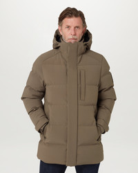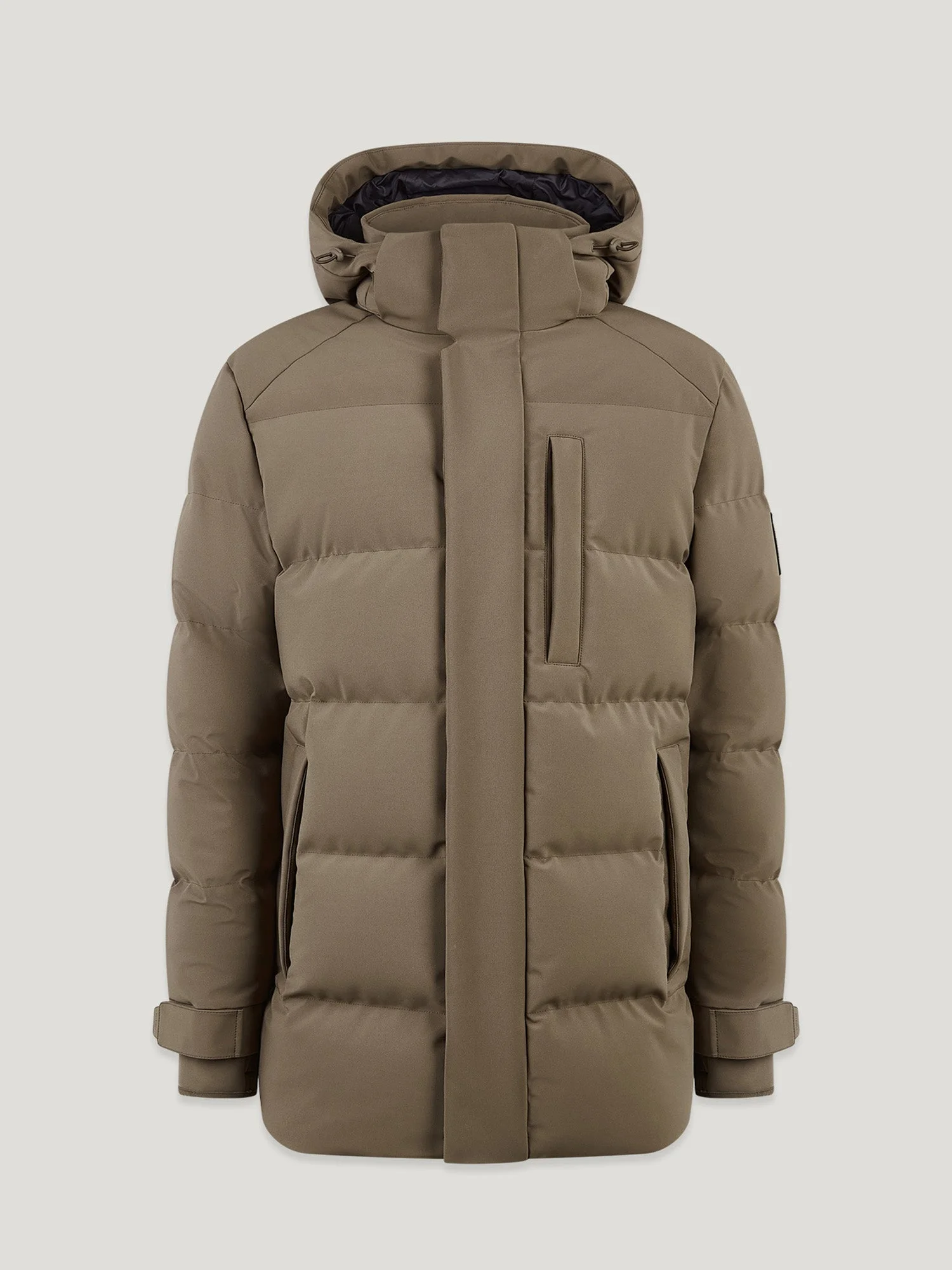 The Pendulum Jacket in Major Brown has all the warmth of an oversized winter coat without being bulky, taking you from city streets to the snowy countryside. This winter-ready piece features 800 fill power down – a premium down that is much warmer than the average without any additional weight. It’s also water-repellent to protect it from the elements. DETAILS - 3-layer stretch nylon shell - Technical mid-length style with detachable hood - Fleece-lined chin guard - Storm cuff with thumbhole - Adjustable cuffs - Silicone Belstaff logo on placket and cuffs - Woven logo patch on left sleeve - Double centre front aquaguard zip - Silicone branded concealed storm placket - Two side-entry fleece-lined hand warmer pockets - Elasticated pocket entry - Left internal pocket - 800 fill power down - Down and feather from a responsible source - Recycled polyamide lining - Shell: 90% Polyester, 10% Elastane - Product ref: 105314MJRBN SIZE AND FIT - Cut for a regular fit - Model wears a size 38 - Model Measures: Height: 6'1", Chest: 40", Waist: 31"
