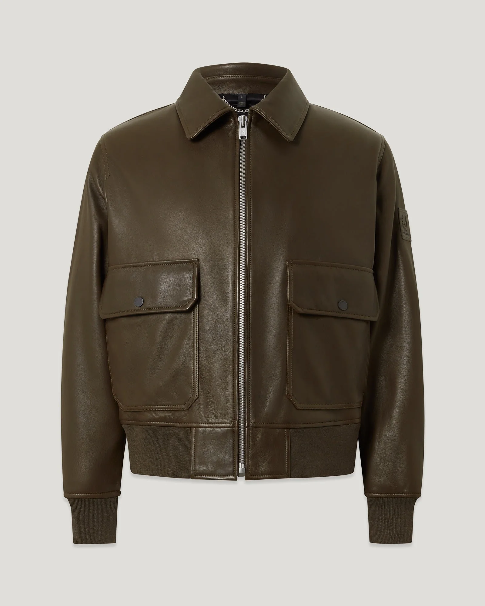 The Pilot jacket in Faded Olive is a modern, functional bomber style. It’s made from supple lamb skin leather for exceptional softness and durability. This men’s jacket features an authentic flight jacket silhouette with a shorter body length. Layer it over a T-shirt or a lightweight knit for a strong, timeless look this season. DETAILS - Premium soft lamb skin leather - Rib cuff and hem - Authentic flight jacket silhouette - Padded body with onion quilt - Nickel centre front zip - Two applied hip pockets with side entry with tonal flap snaps - Belstaff's leather products support responsible manufacturing via the Leather Working Group - Shell: Sheep Leather (Ovis Aries Aries), Body and sleeve lining: 100% Viscose, Filling: 85% Recycled Polyester 15% Polyester - Made in Turkey - Size M has a 64 cm back body length - Product ref: 105830FDOLI SIZE AND FIT - Cut for a regular fit