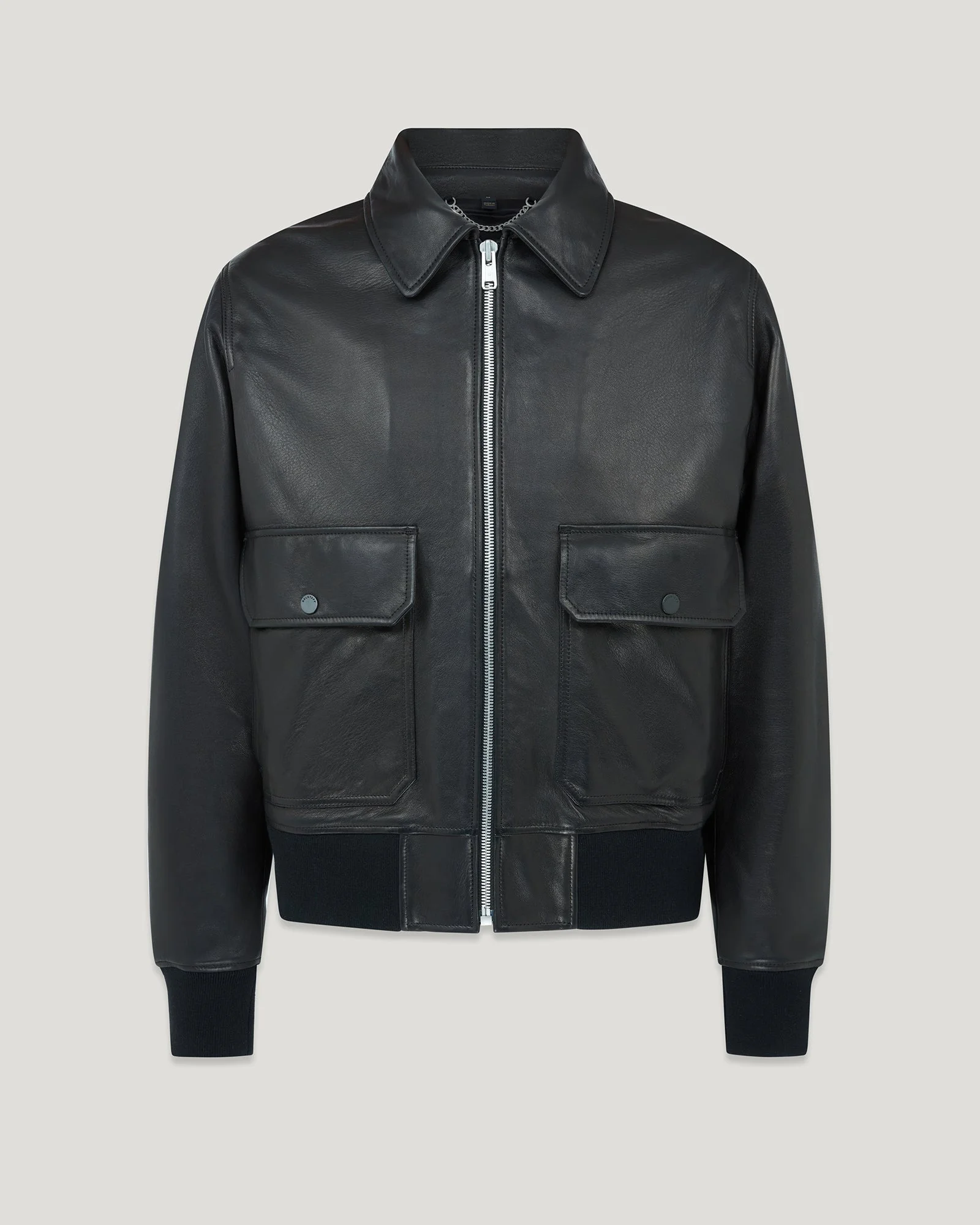 The black Pilot jacket is a modern, functional bomber style. It’s made from premium soft lamb skin leather for exceptional softness and suppleness. This men’s jacket features an authentic flight jacket silhouette with a shorter body length. Layer it over a T-shirt or a lightweight knit for a classic, easy look this season. DETAILS - Premium soft lamb skin leather - Rib cuff and hem - Authentic flight jacket silhouette - Padded body with onion quilt - Nickel centre front zip - Two applied hip pockets with side entry with tonal flap snaps - Belstaff's leather products support responsible manufacturing via the Leather Working Group - Shell: Sheep Leather (Ovis Aries Aries), Body and sleeve lining: 100% Viscose, Filling: 100% Polyester - Product ref: 105830BLACK SIZE AND FIT - Cut for a regular fit with drop shoulder - Model wears a size L - Model measures : Height: 6'3", Chest: 39", Waist: 32"