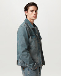 The Piston jacket in Washed Denim draws inspiration from a 1970s archival Belstaff garment, featuring a rugged trucker silhouette. This men’s jacket updates the classic design for warmer weather, using rigid denim that we wash to achieve a worn-in effect. DETAILS - Centre front button closure - Two chest pockets fastening with buttons, two hip pockets - Medium direct embroidered patch - Leather jacron patch - Shell: 99% organic cotton, 1% lycra Lining: 100% cotton - Made in Turkey - Dyed and woven in Turkey - Size M has a 64 cm back body length - Product ref: 106267ANTQE SIZE AND FIT - Cut for a regular fit - Model wears a size L - Model measures: Height: 6.0", Chest: 40", Waist: 31"