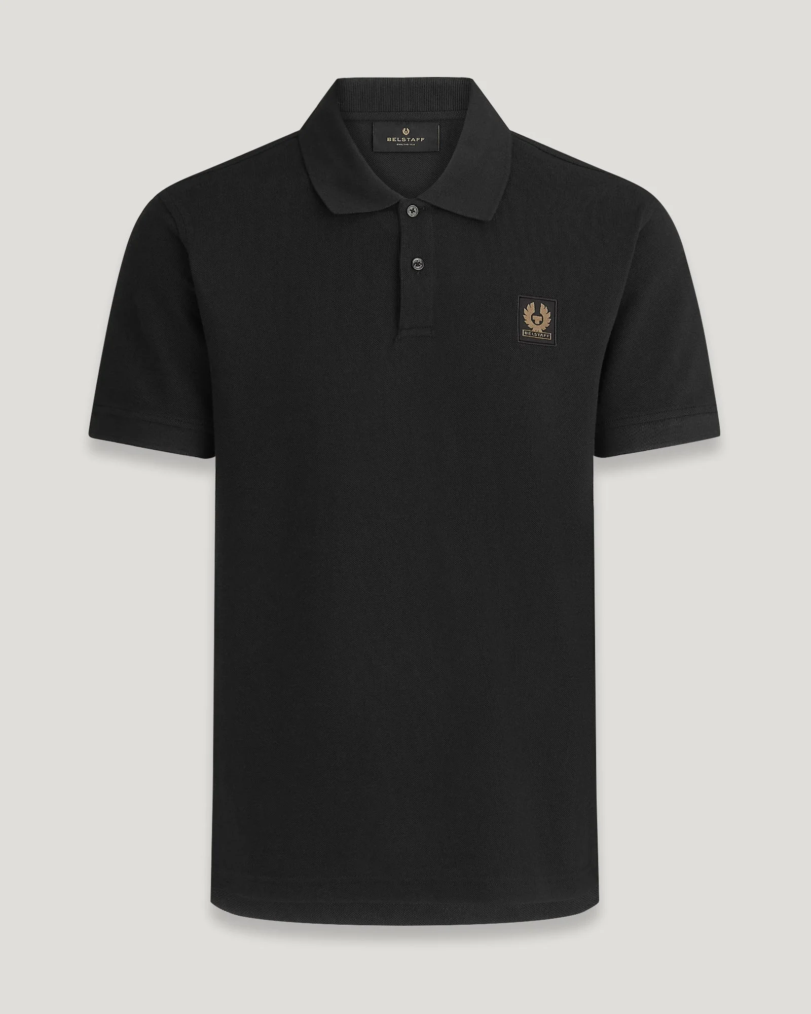 The S/S polo in black. This piqué cotton top has its roots in sportswear. The textured fabric and classic cut mean it will make sense worn smart or casual. DETAILS - Textured cotton piqué - Short-sleeved polo shirt - Rib collar and cuffs - Two-button placket - Embroidered-edge Phoenix patch on chest - 100% Cotton - Product ref: 101516BLACK SIZE AND FIT - Cut for a regular fit - Model wears a size M - Model measures: Height: 6'3", Chest: 37", Waist: 32"