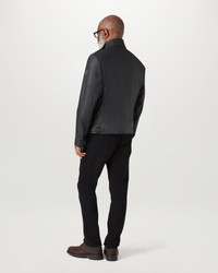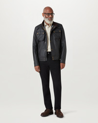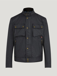 The Racemaster jacket in Black. There’s more to the Racemaster than meets the eye. Introduced back in 1981, it was originally billed as a shorter version of the iconic Trialmaster. This means that, along with the history, heritage, and dark navy 6 oz. waxed cotton, you also get increased mobility and freedom to move. DETAILS - 6 oz. waxed cotton, with a unique blend of micro and technical waxes - Four external pocket field jacket with reinforcement patches and corduroy details - Water-repellent and wind-repellent - Corduroy linings at the collar, cuffs and hem providing added comfort and resilience at high contact points - Signature antique brass metal hardware with Belstaff England engraved on the round and signature phoenix woven patch on left sleeve - Centre front zip closure with snap closure placket - Buckle-adjusted collar - Two press-stud flap pockets - Two lower zipped pockets - Left internal pocket - By choosing our cotton products, youare supporting Belstaff`s investment in Better Cottonas mission. This product is sourced via a system of mass balance and therefore may not contain Better Cotton. Learn more at bettercotton.org/learnmore - Shell: 100% Cotton, Body Lining: 100% Cotton - Sleeve Lining: 55% Polyester, 45% Viscose/Rayon - Product ref: 105306BLACK SIZE AND FIT - Cut for a slim fit - Model wears a size US 40 - Model measures: Height: 6'1", Waist: 36", Chest: 31"
