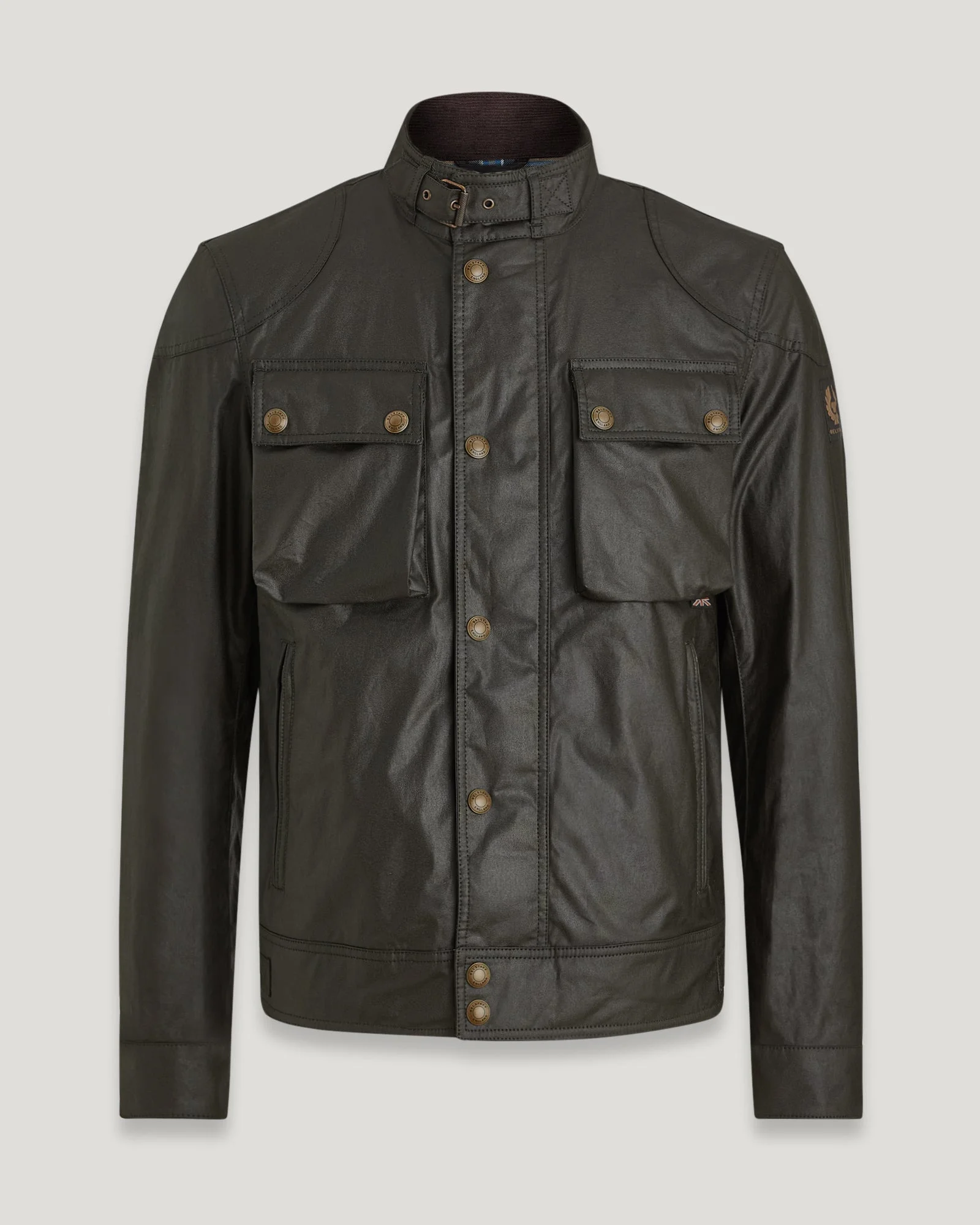 The Racemaster jacket in Faded Olive. There’s more to the Racemaster than meets the eye. Introduced back in 1981, it was originally billed as a shorter version of the iconic Trialmaster. This means that, along with the history, heritage, and dark navy 6 oz. waxed cotton, you also get increased mobility and freedom to move. DETAILS - 6 oz. waxed cotton, with a unique blend of micro and technical waxes - Four external pocket field jacket with reinforcement patches and corduroy details - Water-repellent and wind-repellent - Corduroy linings at the collar, cuffs and hem providing added comfort and resilience at high contact points - Signature antique brass metal hardware with Belstaff England engraved on the round and signature phoenix woven patch on left sleeve - Centre front zip closure with snap closure placket - Buckle-adjusted collar - Two press-stud flap pockets - Two lower zipped pockets - Left internal pocket - By choosing our cotton products, youare supporting Belstaff`s investment in Better Cottonas mission. This product is sourced via a system of mass balance and therefore may not contain Better Cotton. Learn more at bettercotton.org/learnmore - Shell: 100% Cotton, Body Lining: 100% Cotton - Sleeve Lining: 55% Polyester, 45% Viscose/Rayon - Product ref: 105306FDOLI SIZE AND FIT - Cut for a slim fit - Model wears a size US 40 - Model measures: Height: 6'0", Chest: 36", Waist: 30"