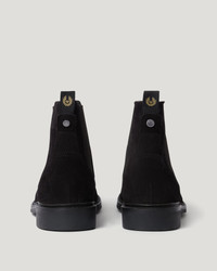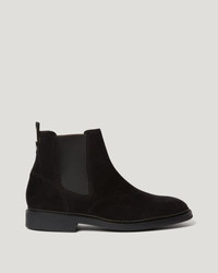 Meet the Roebuck boot in black suede. This men’s Chelsea boot is crafted with Goodyear Welted construction, creating a tightly crafted, water-resistant, and wearable design for years to come. The Dainite rubber soles feature a distinctive studded pattern that enhances traction on wet and slippery surfaces, making them perfect for British weather. DETAILS - Dainite rubber sole - Goodyear welted construction - Woven phoenix webbing back loop - Gunmetal branded rivet - Upper and lining: Leather, Sole: Other materials - Heel height: 30mm, Leg height: 145mm - Product ref: 105923BLACK SIZE AND FIT - Cut for a regular fit