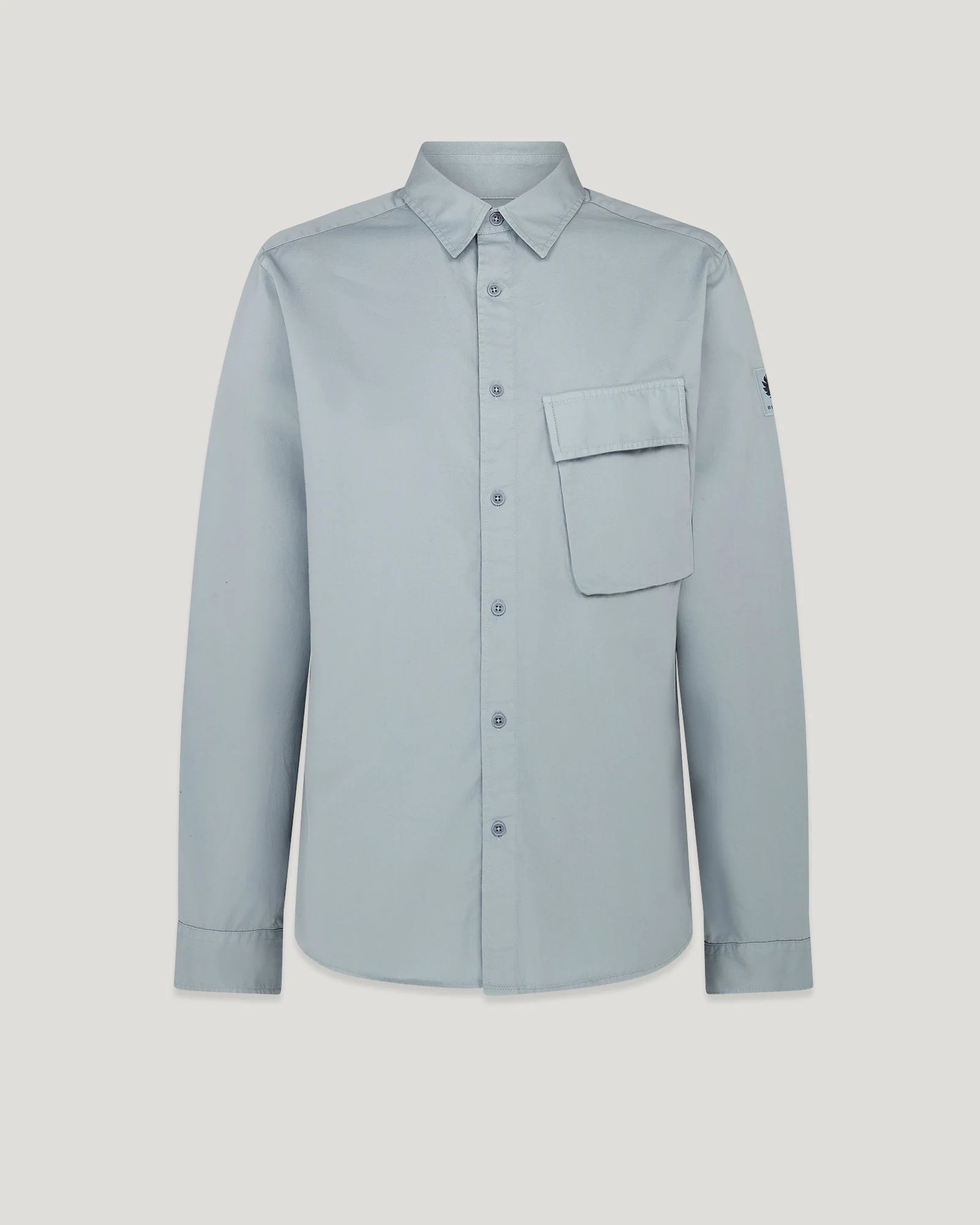 A go-to smart casual style in Quarry Blue. Our Scale Shirt is crafted from a structured cotton twill and garment-dyed for a rich, saturated colour. DETAILS - Garment dye cotton twill - Signature tilted bellows chest pocket with concealed button flap - Point collar - Adjustable button cuff - Belstaff phoenix patch on left sleeve - Button front closure - BCI Cotton - 100% Cotton - Product ref: 104537QRYBL SIZE AND FIT - Cut for a regular fit