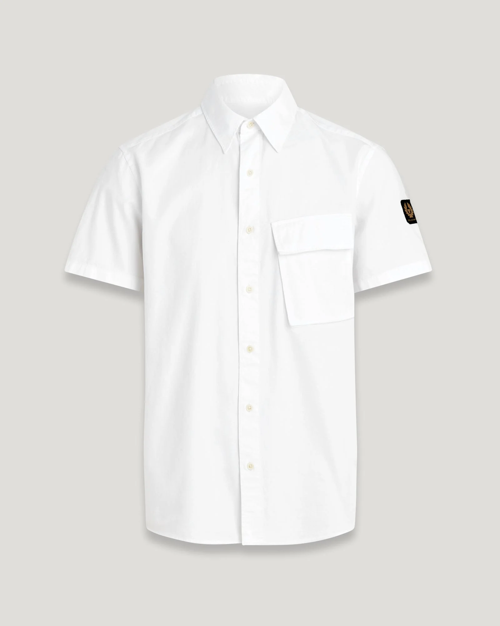 The Scale Short Sleeve Shirt. A classic buttoned shirt made from pure garment-dyed cotton in White. DETAILS - Garment dye cotton twill - Signature tilted chest pocket with button flap - Point collar - Adjustable button cuffs - Belstaff phoenix patch on left sleeve - Button front closure - By choosing our cotton products, you’re supporting Belstaff`s investment in Better Cotton’s mission. This product is sourced via a system of mass balance and therefore may not contain Better Cotton. Learn more at bettercotton.org/learnmore - 100% Cotton - Product ref: 104768WHITE SIZE AND FIT - Cut for a regular fit - Model wears a size M - Model measures: Height: 6'0", Chest: 40", Waist: 31"