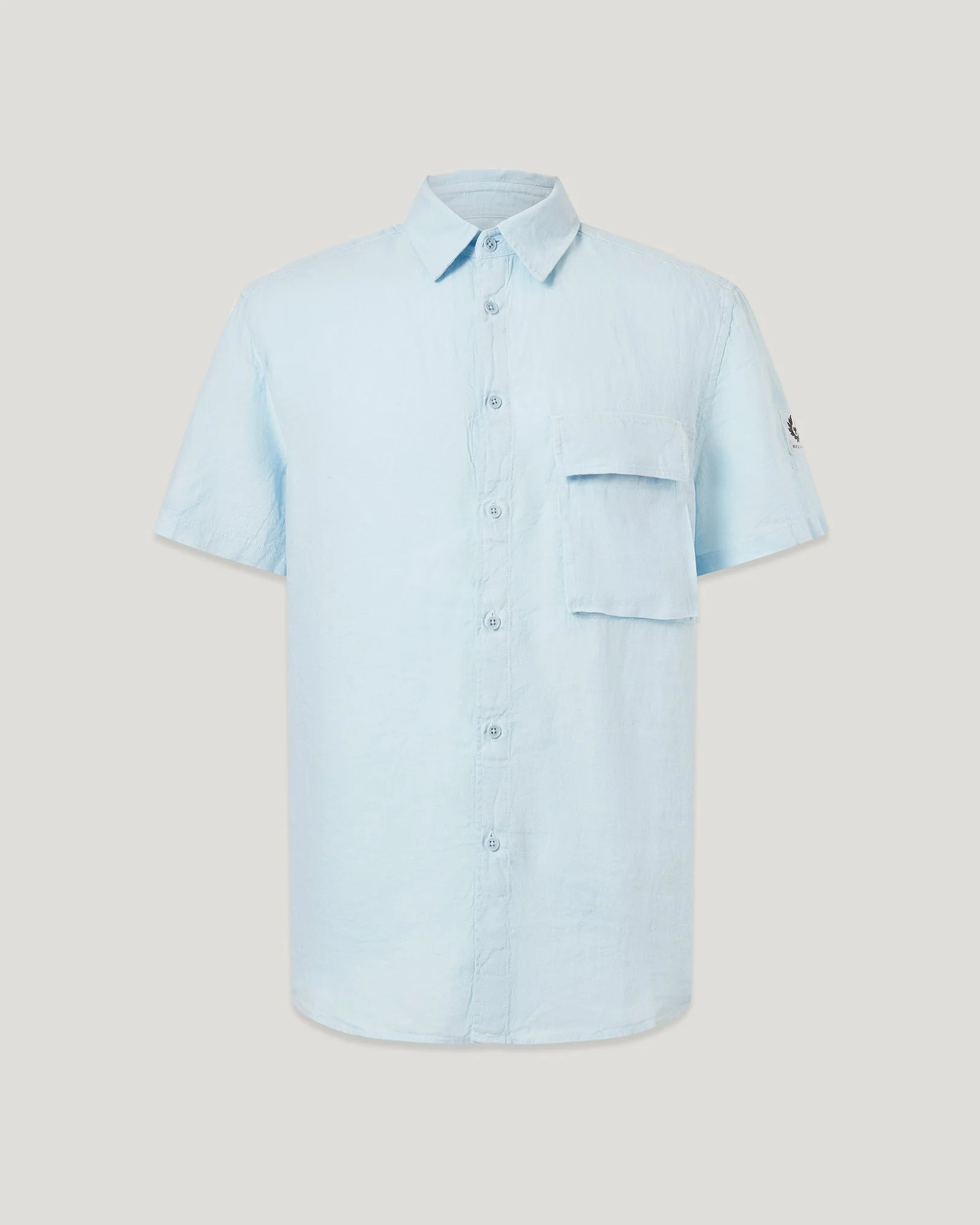 Meet the Scale short-sleeve shirt in Sky Blue. This classic, yet modern piece is crafted from garment-dyed linen for ultimate softness. Our clever dyeing process provides a deeper colour with natural variation and a lived-in feel, so the shirt feels like an old favourite from day one. DETAILS - Signature tilted chest pocket with button flap - Point collar - Adjustable button cuff - Belstaff phoenix patch on left sleeve - Tilted, bellows pocket with concealed button flap - Regular fit - 100% linen - Made in Portugal - Dyed and woven in Portugal - Product ref: BLUE-105644SKBLU SIZE AND FIT - Cut for a regular fit