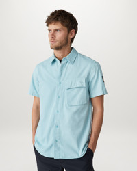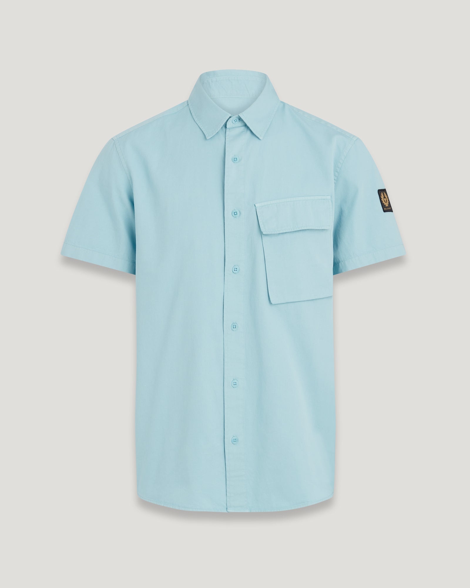 The Scale Short Sleeve Shirt. A classic buttoned shirt made from pure garment-dyed cotton in Skyline Blue. DETAILS - Garment dye cotton twill - Signature tilted chest pocket with button flap - Point collar - Adjustable button cuffs - Belstaff phoenix patch on left sleeve - Button front closure - By choosing our cotton products, you’re supporting Belstaff`s investment in Better Cotton’s mission. This product is sourced via a system of mass balance and therefore may not contain Better Cotton. Learn more at bettercotton.org/learnmore - 100% Cotton - Product ref: 104768SYLBU SIZE AND FIT - Cut for a regular fit - Model wears a size M - Model measures: Height: 6'2", Chest: 37", Waist: 29"