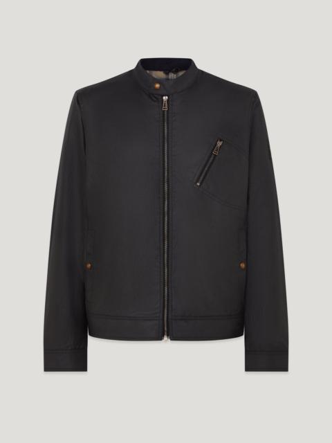 A minimal and relaxed take on the cafe racer first introduced in 2025, the Sideline jacket in Dark Asphalt provides instant protection with 6oz. British Millerian waxed cotton. This clever fabric offers water and wind resistance, long-lasting durability, and a finish that becomes more characterful with age. The jacket features a cotton twill lining woven in the signature Belstaff checked pattern. DETAILS - 6 oz. waxed cotton - Water and wind repellent - Cotton twill lining woven in the signature Belstaff checked pattern - Based on iconic V Racer Jacket - Snap adjustable cuffs - Antique brass hardware - Woven phoenix patch on sleeve - Centre front zip fastening with snap closure at neck - One zip pocket - Two lower pockets with side entry - Shell: 100% Cotton, Lining: 100% Cotton - Sleeve lining: 55% Polyester, 45% Viscose / Rayon - Made in Bulgaria - Dyed and finished in the UK - Product ref: 105803DKAPT SIZE AND FIT - Cut for a regular fit - Model wears a size L - Model measures: Height: 6'1", Chest: 41”, Waist: 32"