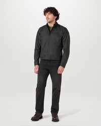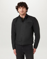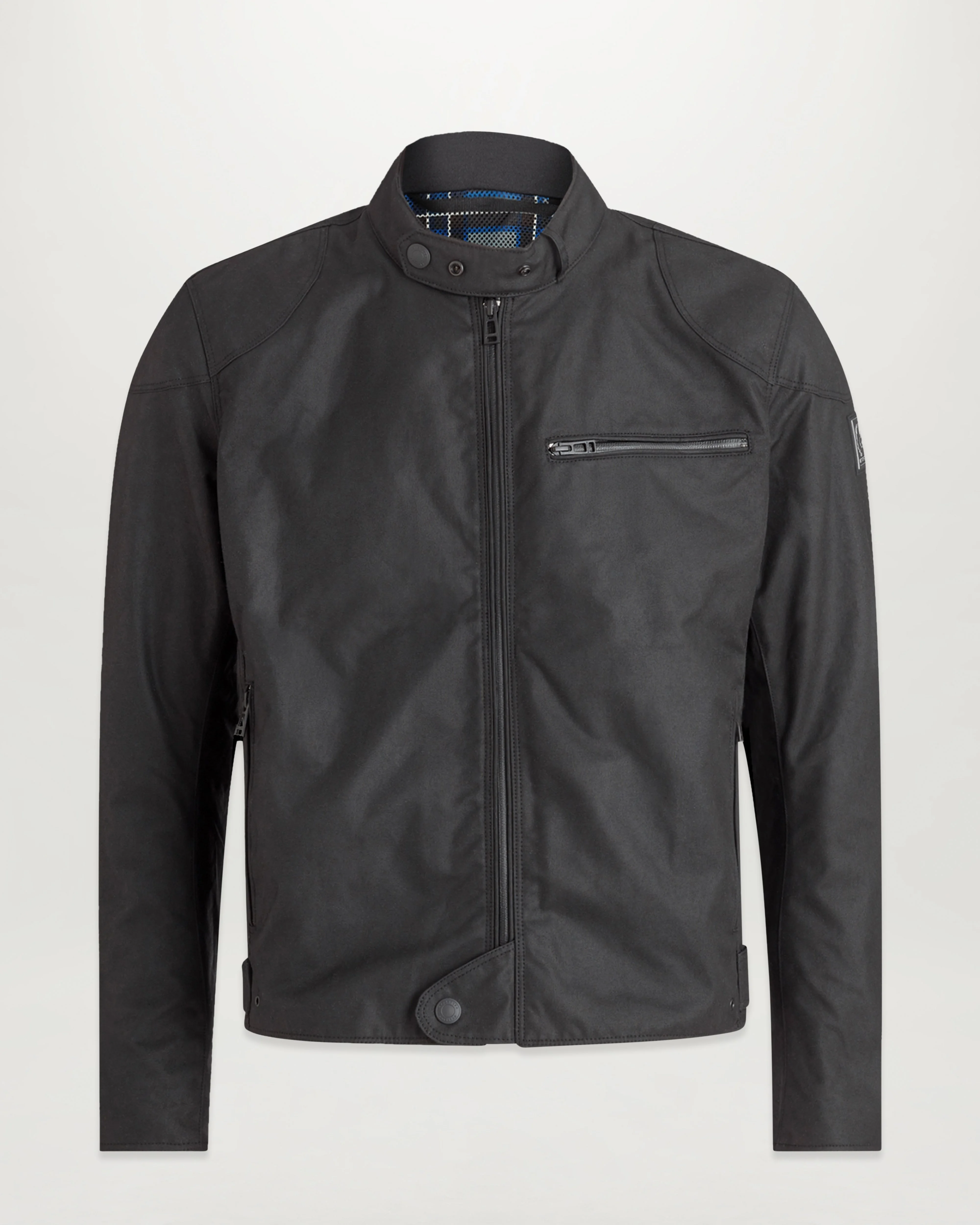 Cut from 8oz. British Millerain waxed cotton with a waterproof membrane, encased between the outer layer and lining, the Stealth Ariel in Black will keep you dry on the ride. Key features include a functional antimicrobial printed mesh lining. Unique design touches include soft neoprene on the collar and cuffs, and piped, waterproof pockets to keep your essentials safe on the move. Metal vents allow airflow and keep you cool on warmer days. DETAILS - 8oz. British Millerain technical waxed cotton  - Matt black tonal hardware throughout  - Removable D3O L1 vented armour at elbow and shoulder  - Breathable, waterproof membrane - Twin needle topstitching for strength - Antimicrobial lining with printed signature check  - Neoprene inside collar and cuff - Waterproof zips on pockets and cuffs - Unwaxed cotton facing to protect clothing - Underarm metal airvents - Adjustable waist with snap and press studs - Zip shield with rain gutter - Silicone last central snap to protect the tank - Product ref: 104259BLACK SIZE AND FIT - Cut for a regular fit - Model wears a size M - Model measures: Height: 6'1", Chest: 35", Waist: 29"