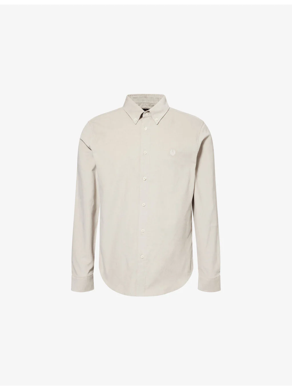 PRODUCT DETAILS - Belstaff cotton shirt - 100% cotton - Exposed button fastening at front - Button-down collar - Buttoned cuffs - Regular fit, collar, long sleeves, brand embroidery at front, all-over corduroy texture, curved hem - Machine wash at 30°C - Made in Turkey - Size medium: length 28in / 72cm, chest 38in / 97cm - Model is 6ft 2in/1.88m and wears a size medium - Lightweight, slight stretch Ref: R04491194
