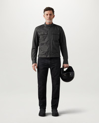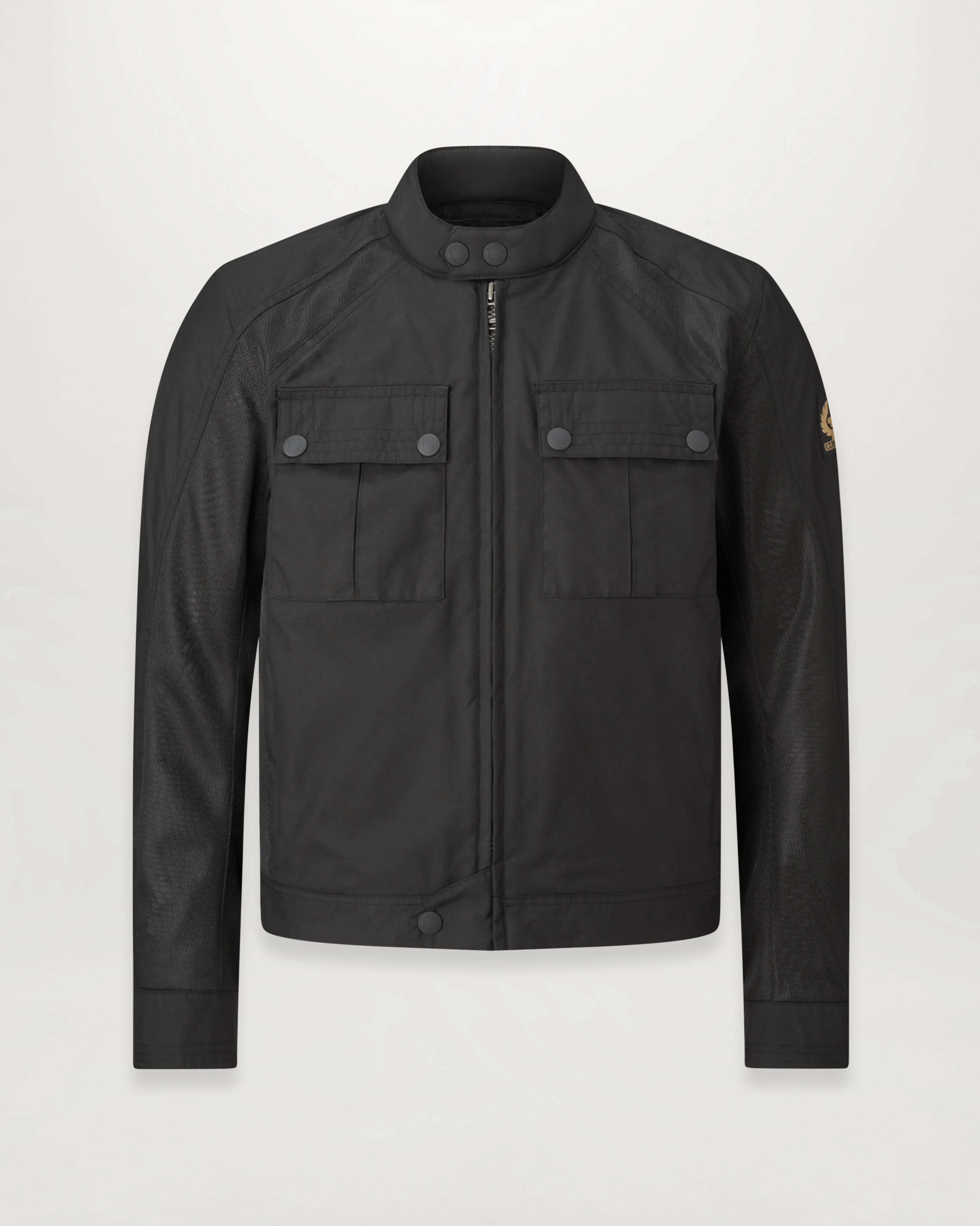 Your go-to jacket for all summer rides, the Temple in Black keeps you safe in comfort and style. CE A certified, it’s cut from abrasion-resistant, black technical nylon with super-strong mesh inserts and vented shoulder and elbow armour. There’s a breathable, waterproof membrane to protect you from the elements. Inside is an antimicrobial chequered lining with a zipped internal Napoleon pocket to safely store your items. Finished with our rising Phoenix emblem in silicone on the left sleeve, and reflective piping on the cuffs and hem to help keep you seen at night. DETAILS - Made from abrasion resistant Belstaff technical nylon - Breathable, waterproof and wind resistant membrane - Belstaff antimicrobial mesh lining - Silicone coated snaps to protect the tank - Waist and back adjusters to stop wind ingress  - Twin needle topstitching for strength - Reflective back logo, cuff and hem piping  - Side catches for waist adjustment - Chest pocket with easy-to-use flap and snaps  - Zipped pocket for back protector - Product ref: 100127BLACK SIZE AND FIT - Cut for a regular fit - Model wears a size M - Model measures: Height: 6'1", Chest: 40", Waist: 31"
