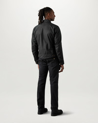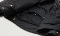 With its mesh panelling that allows maximum airflow, the Temple is perfect for warmer weather – although British Millerain 8oz, technical waxed cotton in Black will still keep out the rain. Cut in classic Belstaff style with a check lining finished to prevent wax migration, D3O shoulder and elbow armour offer extra protection, and there is a kidney shaped waistband for comfort and twin needle topstitching for strength. DETAILS - 8oz. British Millerain technical waxed cotton - Signature check lining - Quintessential Belstaff style for riding in warmer climates - Antique brass hardware - Silicone coated snap fastenings to prevent tank scratching - Mesh panelling for ventilation - Snap throat closure - Twin needle topstitching for strength - Zipped back protector pocket - Adjustable waist and back to prevent wind ingress - Reflective cuff and hem piping - Zipped side pockets - Kidney shaped waistband - Internal zipped pocket - 65% polyester 35% cotton - Certification: A - Protection: D3O Tri-ventilation level 1 (Elbow/Shoulder) - Product ref: 104975Black SIZE AND FIT - Cut for a regular fit - Model wears a size M - Model measures: Height: 6'1", Chest: 40", Waist: 32â