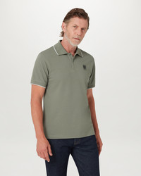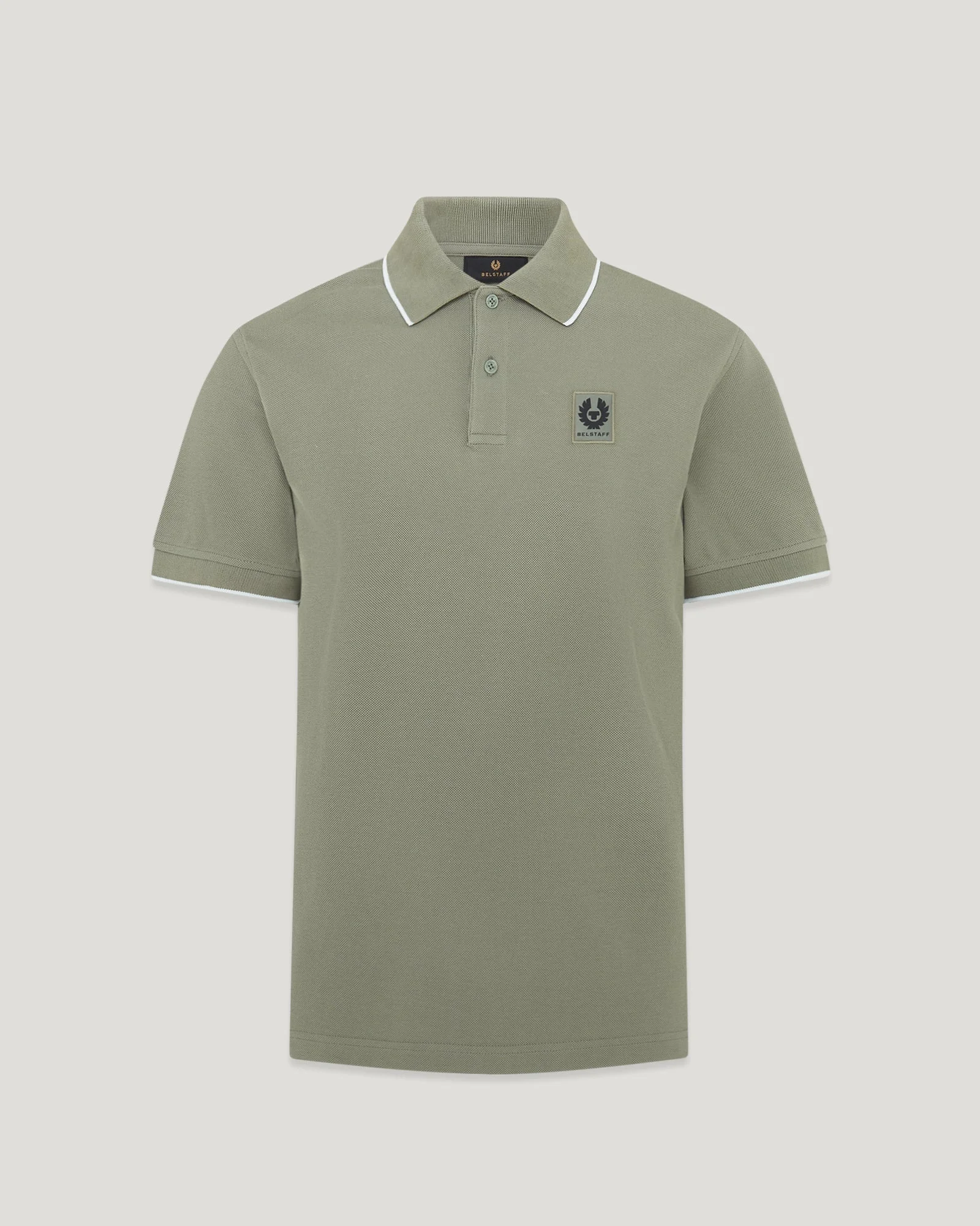 A sporty collared top in finely textured cotton pique. The Tipped Polo in Sage Green is finished with contrast edges. DETAILS - Cotton pique - Tip detailing on sleeves and collar - Classic point collar - Belstaff phoenix patch on body - Two button centre front placket fastening - Organic Cotton Standard - 100% Cotton - Product ref: 104999SAGGR SIZE AND FIT - Cut for a regular fit - Model wears a size M - Model Measures: Height: 6'1", Chest: 40", Waist: 31"