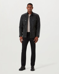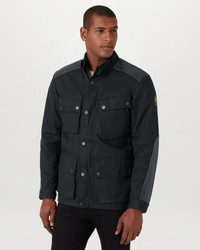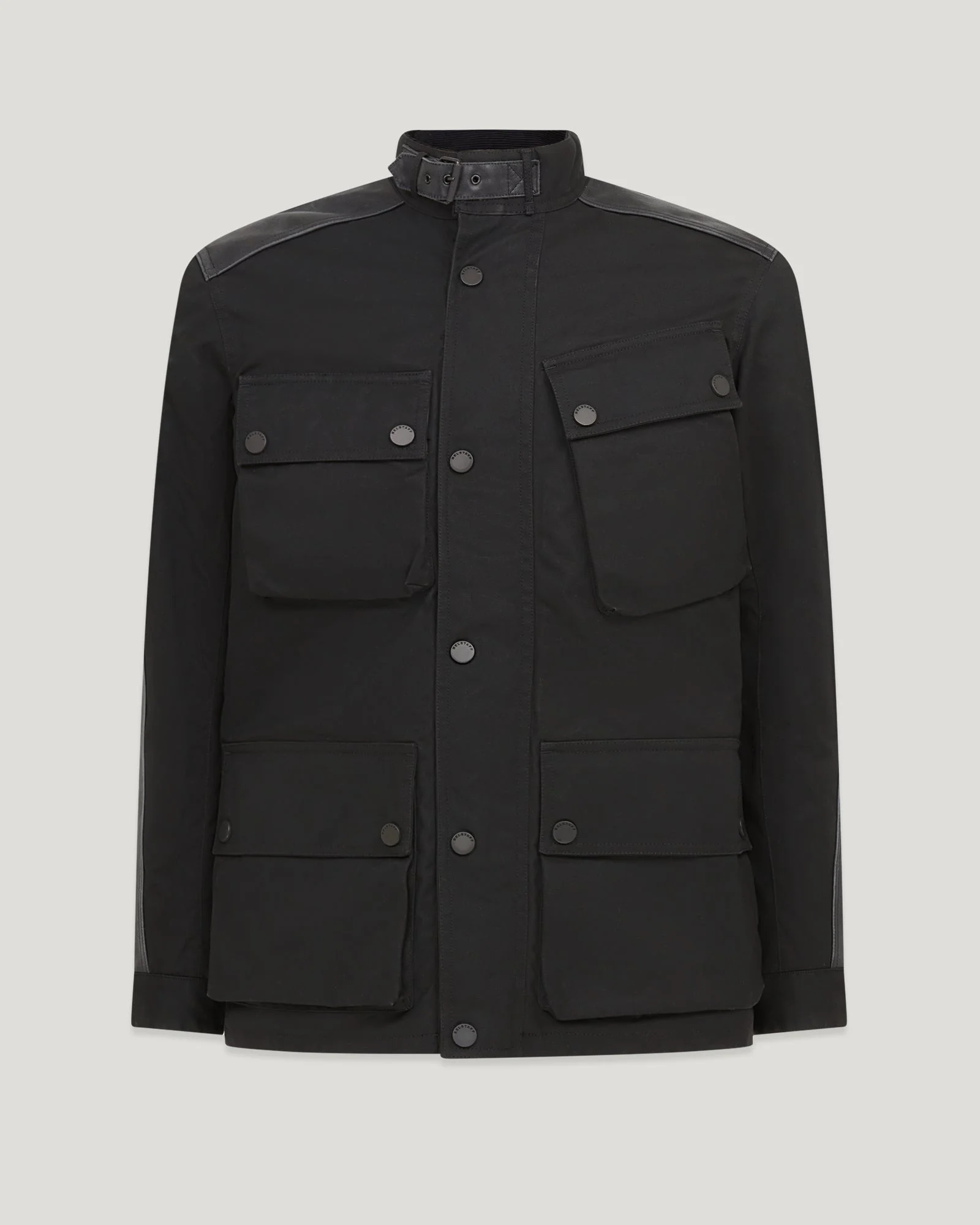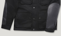 A donkey-style field jacket in British Millerain 8oz. ultracore dry waxed cotton, the Trackmaster motorcycle jacket is available in Black or Sand with tonal corduroy facings and is 4cm shorter than our Trialmaster style. With D3O shoulder and elbow armour as standard and an internal pocket for an optional back protector, waxed leather shoulder and sleeve panels add extra protection from the elements along with a waterproof membrane, zip gutter and airaters. A concealed zip chest pocket and internal pockets, dark silver hardware and signature grey-tone cotton check lining complete the look. DETAILS - Donkey style field jacket in dry waxed cotton - Tonal corduroy facings - Signature knurled throat latch and centenary, dark silver hardware - Hip length (Size M is 4 cm shorter that the Trialmaster) - Concealed zip chest pocket for valuables - Internal trouser loops - Waterproof mebrane, zip gutter and airaters to allow moisture to dry - Signature grey tone cotton checked lining - Waxed leather panels at shoulders and sleeve - Internal zipped pocket for valuables - Dark silver hardware - Shell: 52% Cotton, 48% Polyester. Waterproof Membrane: 100% Polyester Coated Polyurethane. Body Lining: 100% Cotton. Sleeve Lining: 100% Polyamide - Certification: AA - Protection: D3O Tri-ventilation level 1 (Elbow/Shoulder) - Product ref: 105542BLACK SIZE AND FIT - Cut for a relaxed fit