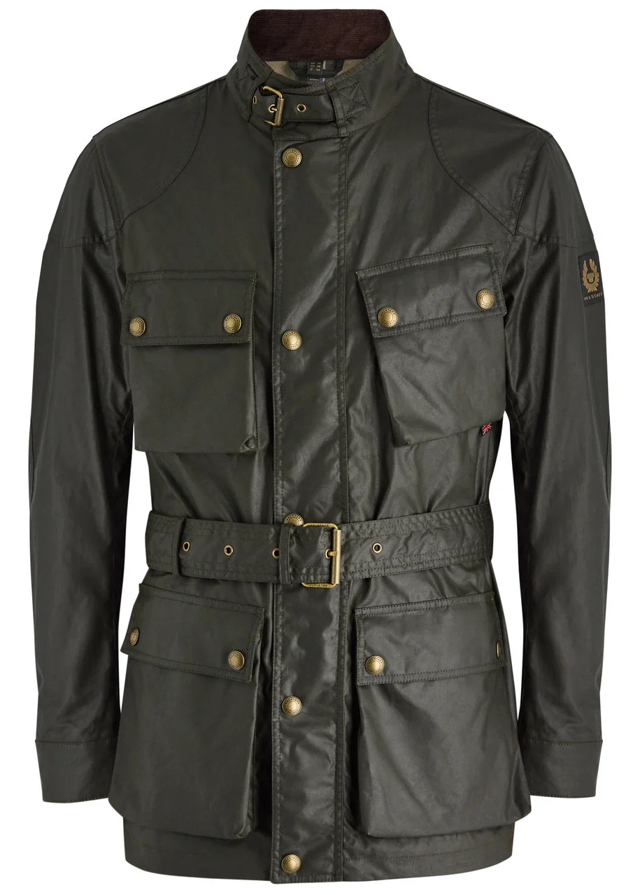STYLE NOTES Belstaff’s Trialmaster jacket has been a mainstay of the label since 1948 and was first created to keep moto riders warm and dry. Crafted from the label’s 6oz. waxed cotton that’s made to last, this heritage style is cut to a slim silhouette and is detailed with a buckled neck, front patch pockets and a belted waist. INFO & CARE - Belstaff waxed cotton jacket - Water and wind repellent, buckle-fastening high-neck, designer plaque at sleeve, adjustable press-stud fastening cuffs, four press-stud fastening patch pockets, designer tag, belt loops, detachable belt, checked cotton lining - Concealed press-stud and zip fastenings through front - 100% cotton (waxed); lining: 100% cotton - Specialist clean SIZE & FIT - Length shoulder to hem: 32.5 inches/ 82.5cm - Midweight - Regular fit - Model is 6'2"/ 188cm, chest size 38 inches and wears a size IT48