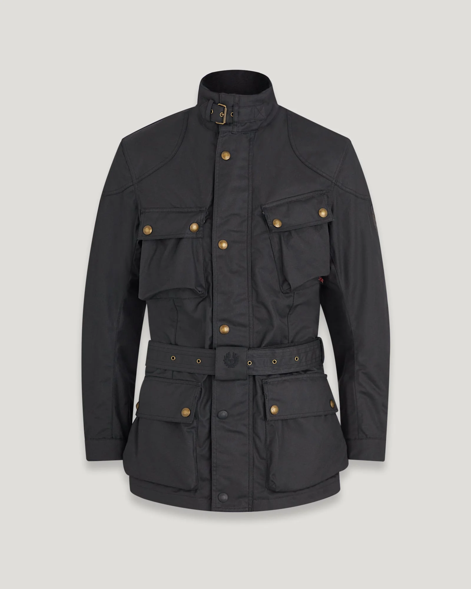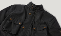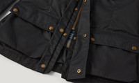 With its roots in the famous Scottish Six Days Trial, the Trialmaster has been our definitive jacket since 1948. This iteration has been updated with British Millerain 8oz, ultracore waxed cotton in Black and a new sleeve cut for enhanced freedom of movement. D3O shoulder and elbow armour keep you protected on the road, and signature details like the slanted map pocket and archival check lining retain its iconic look, whilst the interlayered waterproof membrane and hand-waxed finish keep out the rain. DETAILS - 8oz. British Millerain Ultracore waxed cotton - Compatible with snap-in climate vest - Breathable, waterproof membrane - High tenacity nylon reinforcement at shoulder and elbow - Signature woven logo patch on left arm - Belstaff checked woven cotton lining - Oil resistant corduroy neck and cuffs - Knurled throat latch fastening buckle and strap - Swivel sleeve for 360Ë motion and comfort - Under arm metal airvents - Twin needle top stitching for strength - Internal zip pocket - Engraved antique brass hardware - Buckle cover with embroidered logo - Back pocket - 52% cotton, 48% polyester - Certification: AA - Protection: D3O Tri-ventilation level 1 (Elbow/Shoulder) - Product ref: 104691Black SIZE AND FIT - Cut for a regular fit