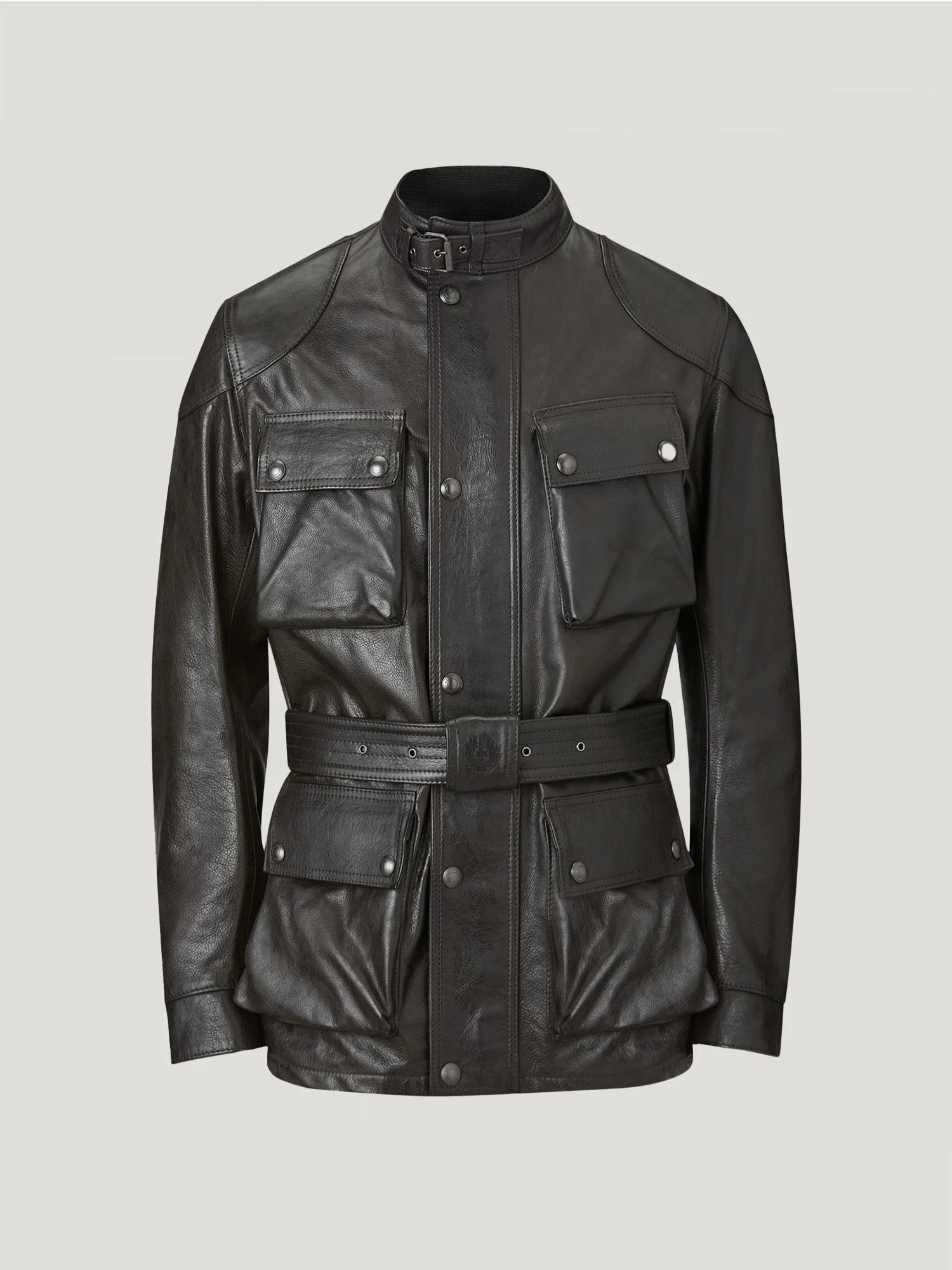 Crafted from 100 per cent cow leather, an 18-hour hand-waxing process provides the colour and ensures each jacket has a unique patina and add to the oil resistant corduroy neck and cuff facings plus protective reinforcement beneath elbow and shoulder patches. Twin needle stitching ensure durability, and D3O shoulder and elbow armour offer protection. With swivel sleeves and underarm air vents for unrivalled mobility and comfort, the timeless Trialmaster styling is completed in Antique Black with a Belstaff checked woven cotton lining. DETAILS - Hand-waxed leather - Four front pockets - Develops a unique patina over time - Protective reinforcement beneath elbow and shoulder patch - Signature check lining - Oil-resistant corduroy neck and cuffs - Adjustable, knurled throat latch fastening - Swivel sleeve for 360Ë motion and comfort - Underarm metal airvents - Twin needle topstitching for strength - Zipped internal pockets - Engraved stud and buckle fastenings - Buckle cover with embroidered logo - Back protection pocket - 100% cow leather - Certification: A - Protection: D3O Tri-ventilation level 1 (Elbow/Shoulder) - Product ref: 105377ATBLK SIZE AND FIT - Cut for a regular fit - Model wears a size M - Model measures: Height: 6'1", Chest: 40", Waist: 32â