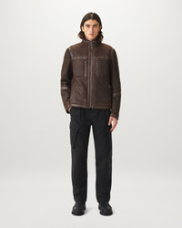 Svelte, with impressive insulation. The Tundra Jacket in Earth Brown and Ebony keeps detailing to a minimum and is made from luxuriously warm lamb shearling. Belstaff`s leather products support responsible manufacturing via the Leather Working Group. DETAILS - Lamb shearling - Zipped shearling jacket - Stand collar - Shearling cuffs - Centre front zip fastening - Two zip chest pockets, Two side zip pockets, internal pockets - Tonal Belstaff Phoenix patch on sleeve - Shell: Dyed lambskin, Trim: Lamb leather, Pocket lining: 100% Cotton - Product ref: 104592ERBEB SIZE AND FIT - Cut for a regular fit - Model wears a size US 38 - Model measures: Height: 6'1", Chest: 39", Waist: 30"