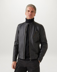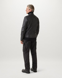 After riding its way to fame in the 1960s, the café racer is here to stay. Our men’s V Racer 2.0 keeps the minimalist, classic cool and crafts it from black, soft cheviot lambskin leather. It’s made to mould to the shape of your journey. DETAILS - Lambskin cheviot leather - Café racer style collar with press-stud closure - Self fabricated channel stitch shoulder reinforcement detailing - Exposed centre front zip closure - Off-breast access pocket with riders’ tilt for ease of access - Two lower pockets with zipped closure - Exterior: 100% Lamb Leather - Product ref: 100528BLACK SIZE AND FIT - Cut for a slim fit - Model wears a size 50 - Model measures: Height: 6'1", Chest: 36", Waist: 31"