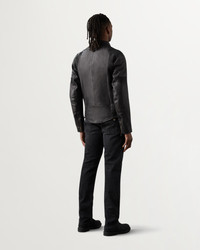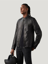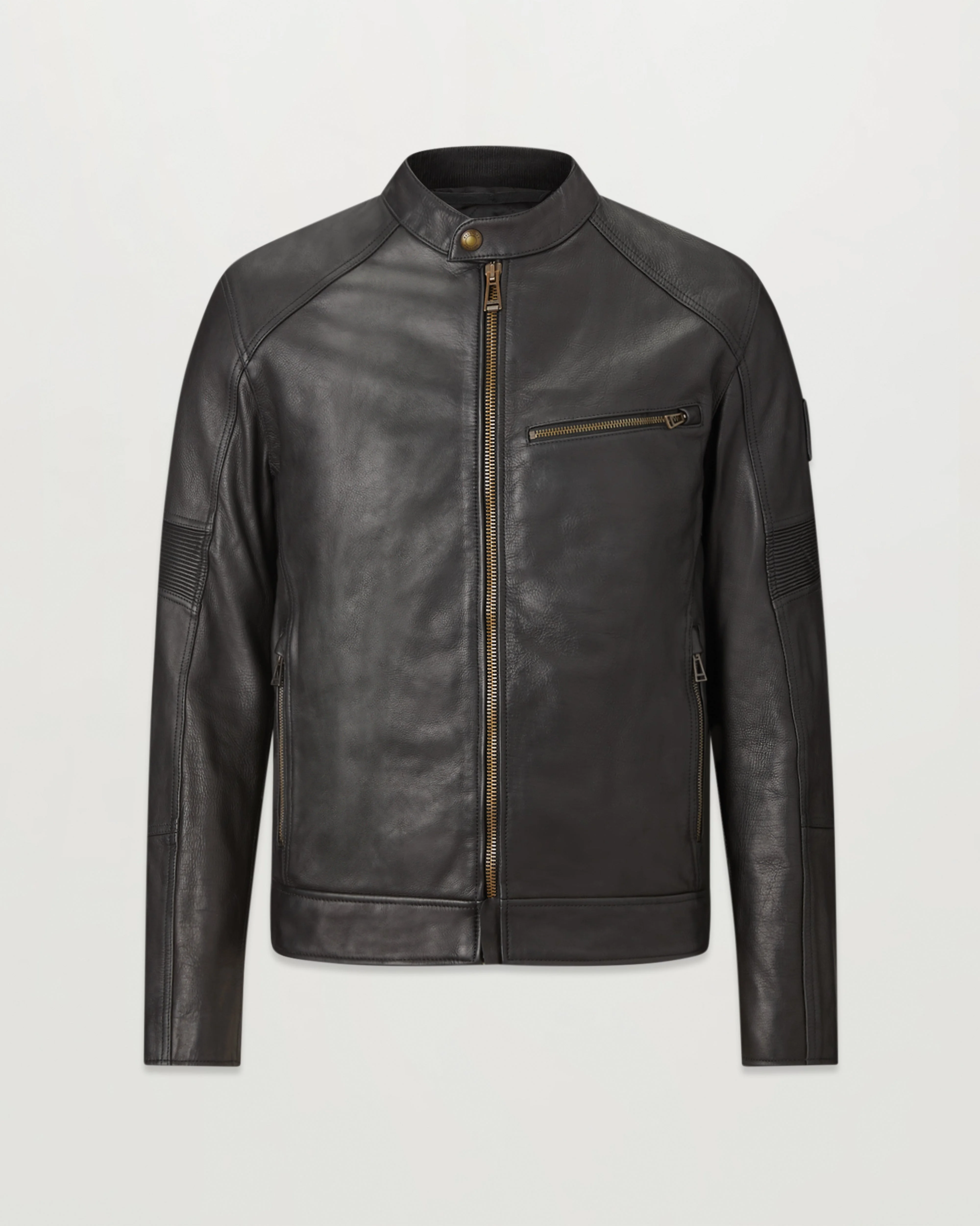 Crafted from 100 per cent washed calf leather with a weather-beating natural wax coating, the black only Vanguard offers a cool combination of form and function. Stretch leather action panels on the arms and shoulders allow for ease of movement while the oil resistant corduroy neck and cuff facings and classic Belstaff stitched shoulder provide durability. Safety features include D3O shoulder and elbow armour, and internal loops allow quick connection to Belstaff motorcycle trousers. DETAILS - Waxed washed calf leather - Versatile bike-to-life silhouette - Leather zip guard at waist to protect tank - Stretch leather action panels on outer bicep and shoulder - Leather embossed logo patch on left arm - Oil-resistant corduroy neck and cuffs - Stud throat fastening and knurled zip - Signature Belstaff stitched shoulder silhouette - Zipped side pockets - Antique brass hardware throughout - Zipped internal pocket - Slanted chest pocket - Back protection pocket - 100% cow leather - Certification: AA - Protection: D3O Tri-ventilation level 1 (Elbow/Shoulder) - Product ref: 104903Black SIZE AND FIT - Cut for a regular fit - Model wears a size L - Model measures: Height: 6'1", Chest: 40", Waist: 32â