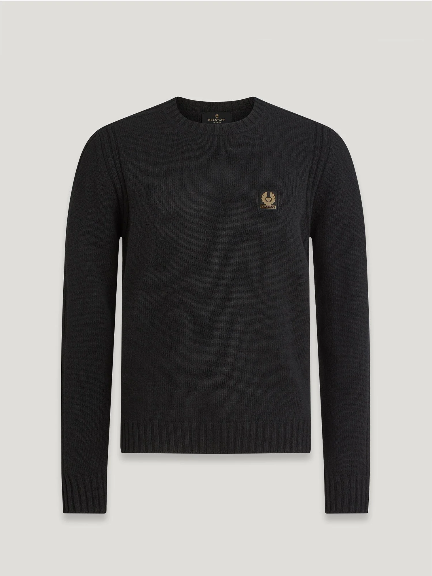 Ribbed details and the Phoenix patch add subtle detail to this sophisticated black knit. Soft lambswool and a straight cut make it a neat layer. DETAILS - Lambswool - Long-sleeved knitted crew-neck jumper - Made in Italy - Ribbed collar and hem - Phoenix patch on the chest - 100% wool - Product ref: 102937BLACK SIZE AND FIT - Cut for a slim fit - Model wears a size L - Model measures: Height: 6'1", Chest: 36", Waist: 31"