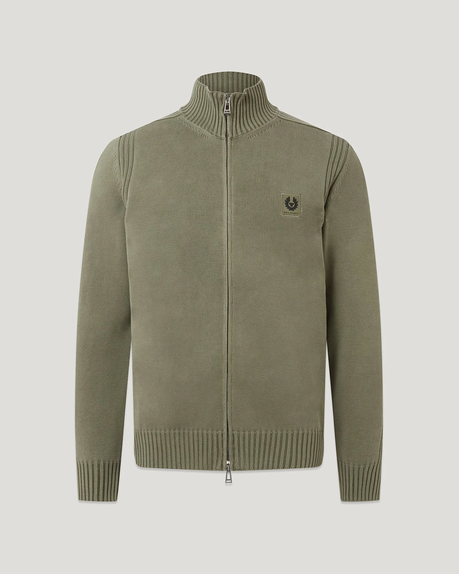 The Watch Full-zip Light in Lichen is a seasonal take on our classic Watch full-zip jumper, now made of lightweight 7-gauge Egyptian cotton for summer. This premium fabric is soft and durable, layering easily over shirts and T-shirts. DETAILS - Tonal fully embroidered Belstaff phoenix patch on the chest - Garment dyed five gauge Egyptian cotton - Ribbed collar, cuffs and hem - Engineered rib detailing at sleeve and armhole - Centre front zip fastening - 100% cotton - Made in Italy - Dyed in Italy - Product ref: 106139LCHEN SIZE AND FIT - Cut for a regular fit - Model wears a size L - Model measures: Height: 6'2", Chest: 38", Waist: 32"