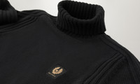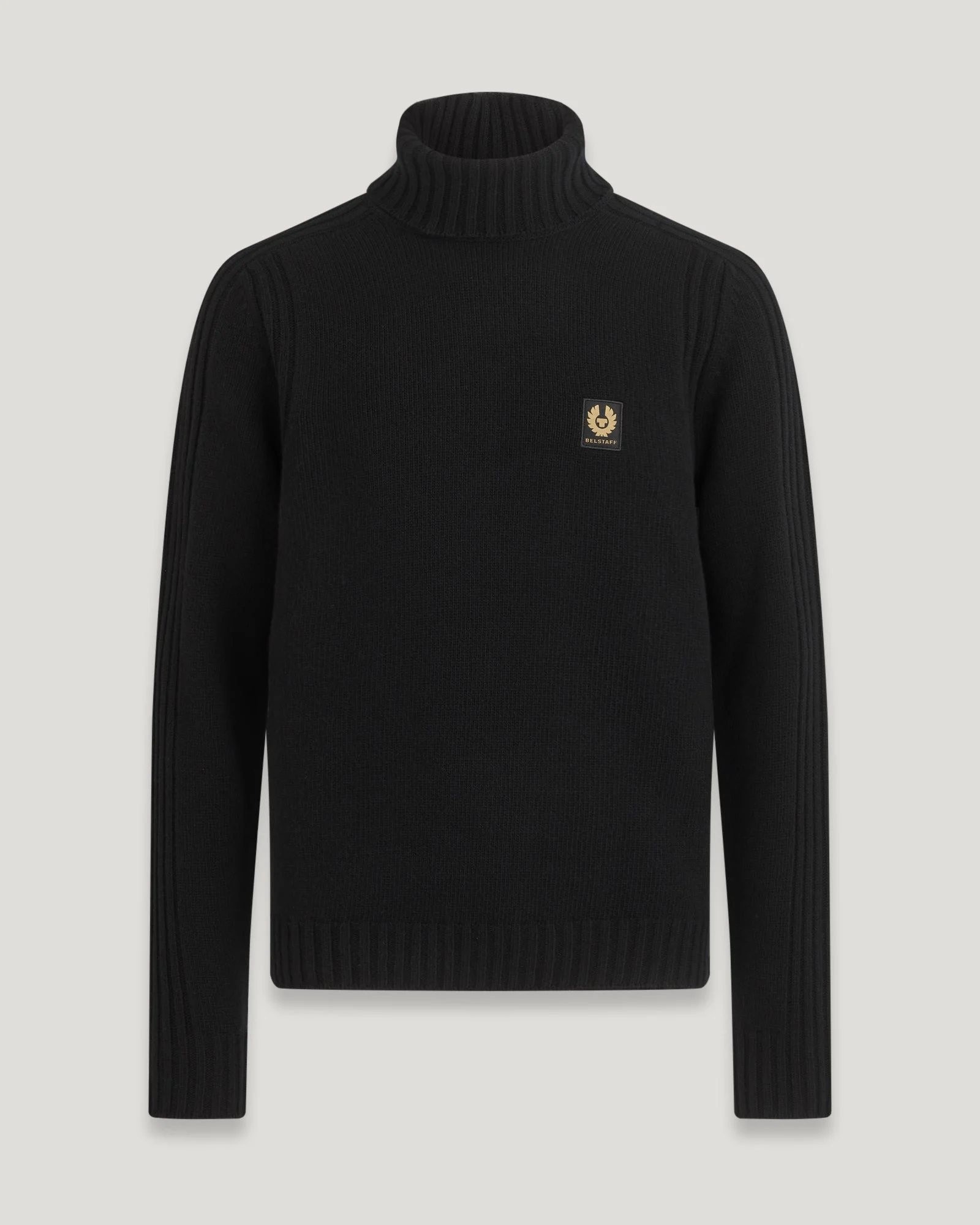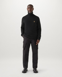 A soft jumper knitted from luxurious virgin lambswool. The Watch Roll Neck Jumper in Black is a wardrobe essential. DETAILS - Soft, virgin lambswool - Long sleeve knitted roll neck jumper - Ribbed collar, cuffs and hem - Engineered rib detailing at sleeve and armhole - Belstaff Phoenix patch on the chest - 100% Wool - Wool from a responsible source - Product ref: 104515BLACK SIZE AND FIT - Cut for a regular fit - Model wears a size L - Model measures: Height: 6'0", Chest: 40", Waist: 31"