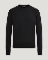 This lightweight jumper is expertly crafted from extra-fine merino wool. Reinforced shoulder panels give the Kerrigan Crew Neck a functional military slant. DETAILS - Extra fine merino - Virgin merino wool with polyester-quilted shoulder panel detailing - Long sleeve sweater with crew neck - Belstaff phoenix patch on left sleeve - Non-mulesed wool - Body: 100% wool, Woven: 100% polyester, Filling: 100% polyester - Product ref: 105304BLACK SIZE AND FIT - Cut for a slim fit - Model wears a size M - Model measures: Height: 6'2", Chest: 37", Waist: 29"